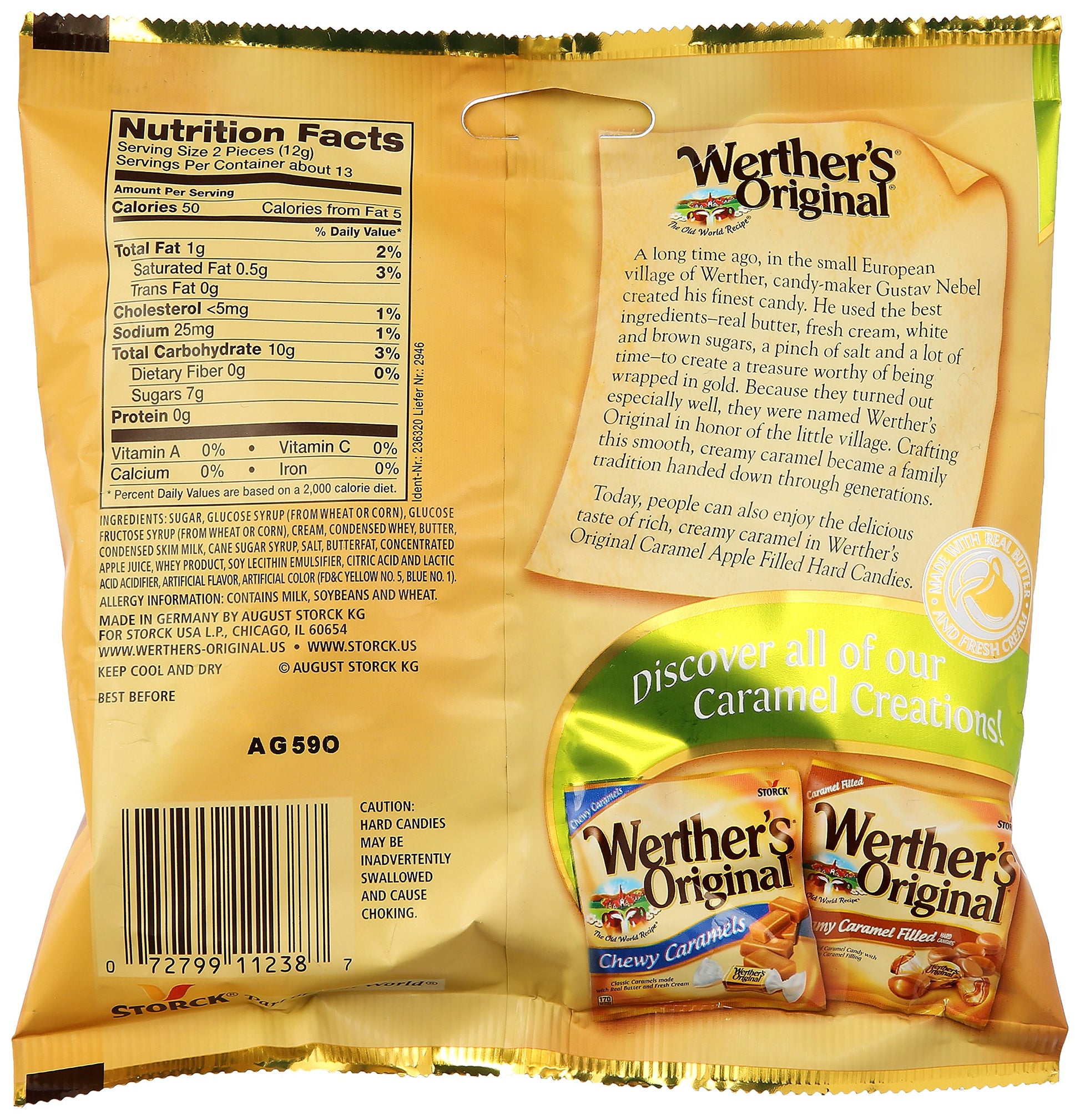 - Q: How many ounces are in a bag of Werther's Original Caramel Apple Filled Hard Candies? A: Each bag of Werther's Original Caramel Apple Filled Hard Candies contains 5.5 ounces of deliciously crafted hard candy.
