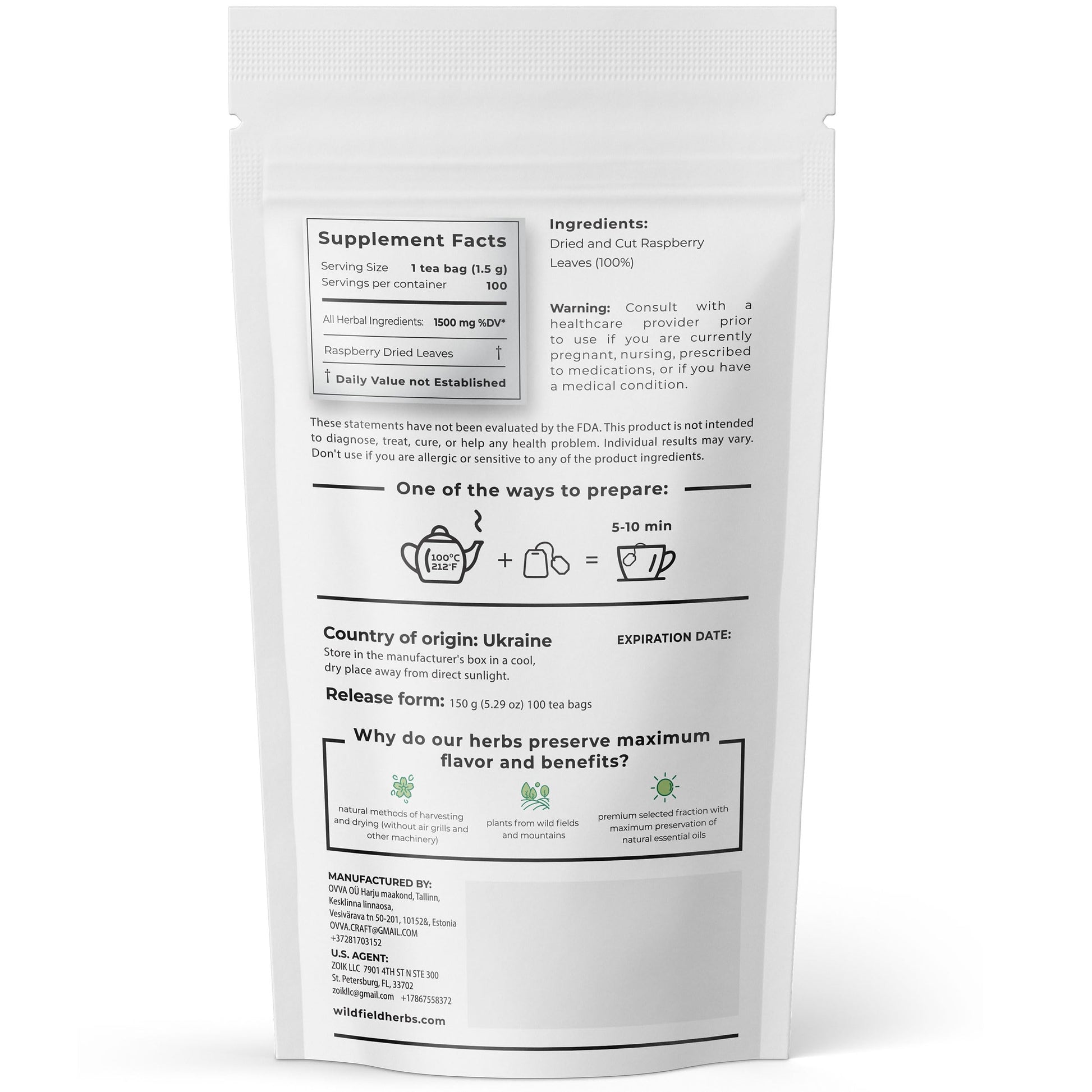 - Q: How should I prepare Raspberry Leaf Tea from these bags? A: To prepare Raspberry Leaf Tea, steep one tea bag in hot water for about 5-10 minutes, depending on your desired strength. For a richer flavor, you can steep it longer. Enjoy it plain or add honey or lemon to enhance the taste.