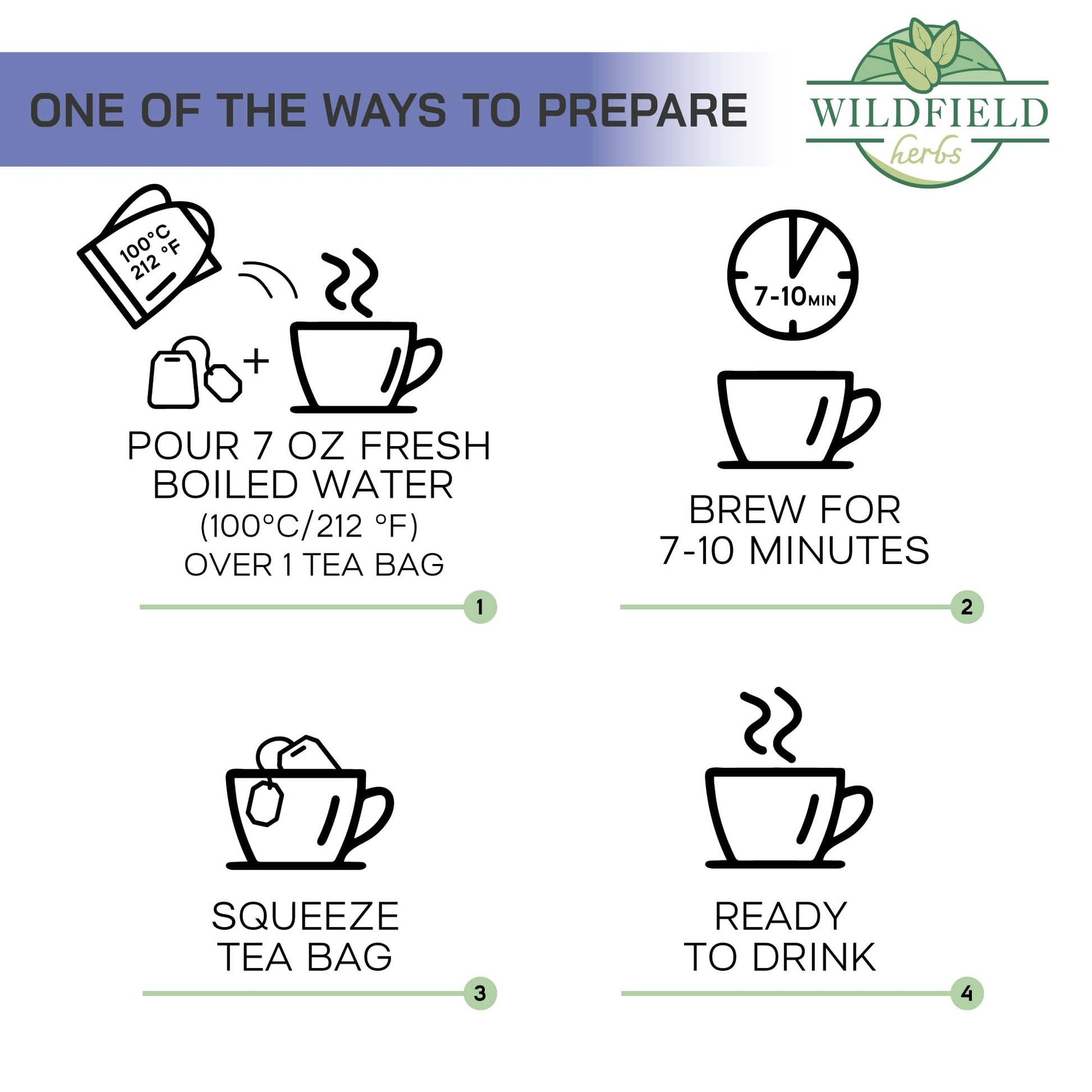 Q: How should I prepare Goat's Rue Herb Tea?A: To prepare Goat's Rue Herb Tea, simply steep one tea bag in boiling water for 5-10 minutes. Adjust steeping time according to your taste preference. Enjoy it hot or iced for a refreshing herbal drink.