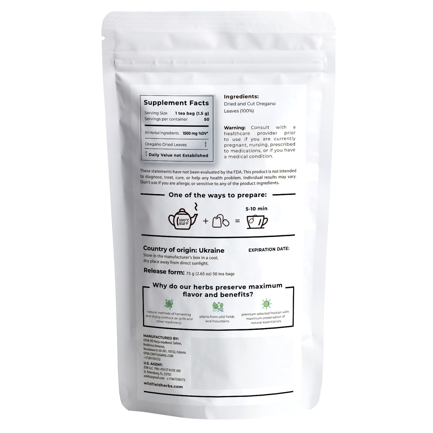 Q: How many tea bags are included in this product?A: This product includes 50 individual tea bags, each containing 1.5 grams of dried oregano leaves, allowing you to enjoy multiple servings of this herbal tea.
