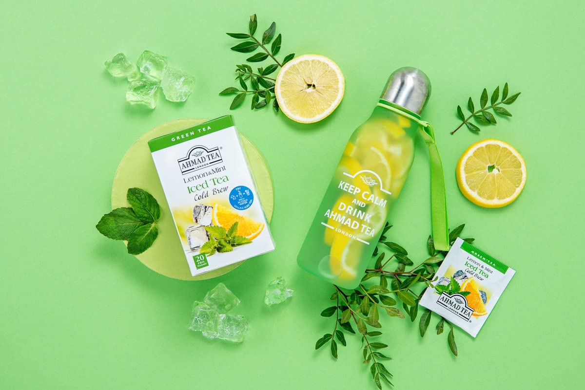 Q: How do I brew Ahmad Tea Green Tea Cold Brew Lemon and Mint?A: To brew Ahmad Tea Cold Brew Lemon and Mint, simply steep the tagged tea bags in cold water for 3-5 minutes. For best results, use fresh, cold water and enjoy it as is or add a slice of lemon for extra flavor.