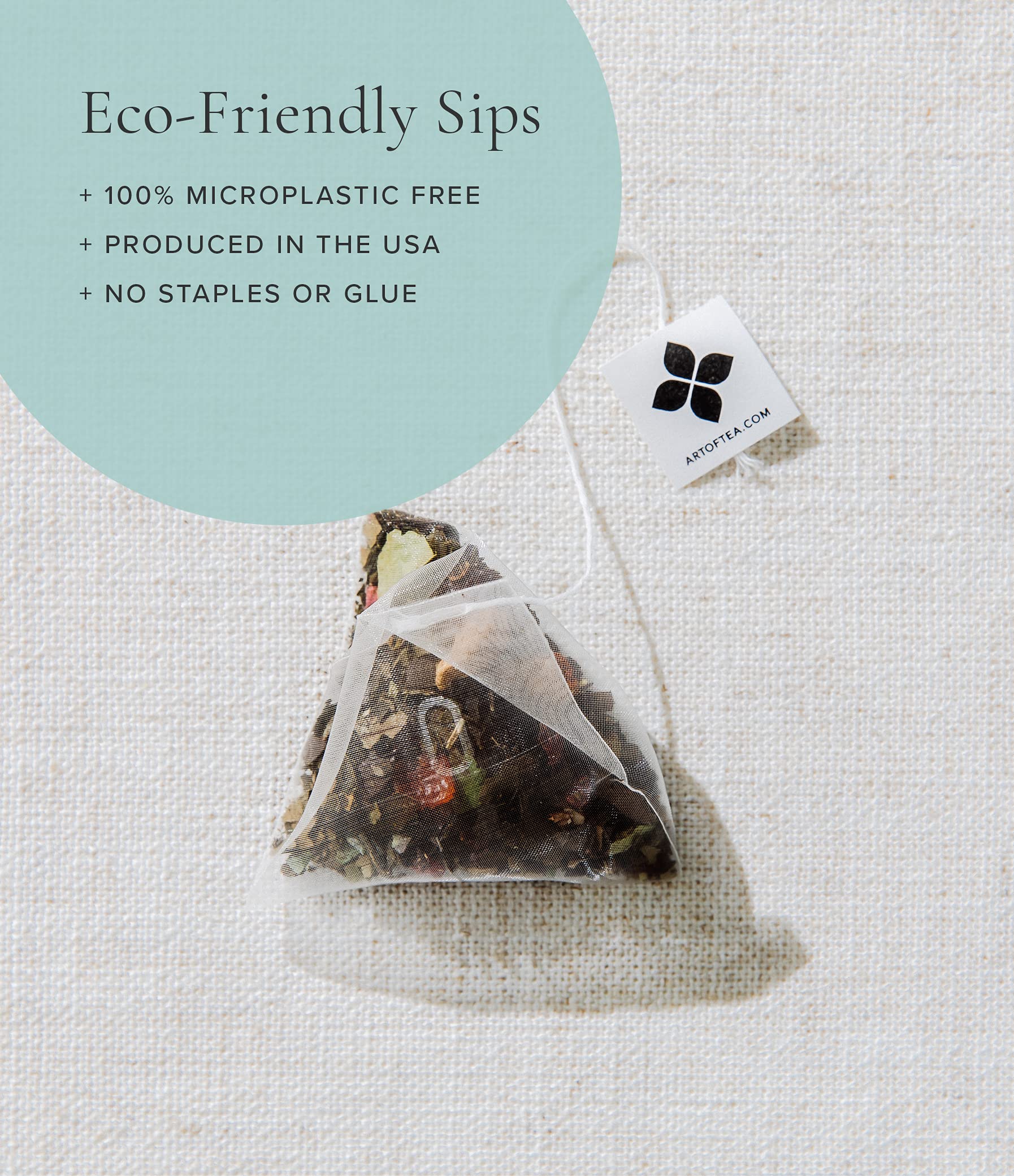 Q: Are the sachets biodegradable and eco-friendly?A: Yes, each Art of Tea sachet is individually wrapped in eco-friendly materials, and the pyramid tea bags are designed to be biodegradable, ensuring a sustainable tea experience.
