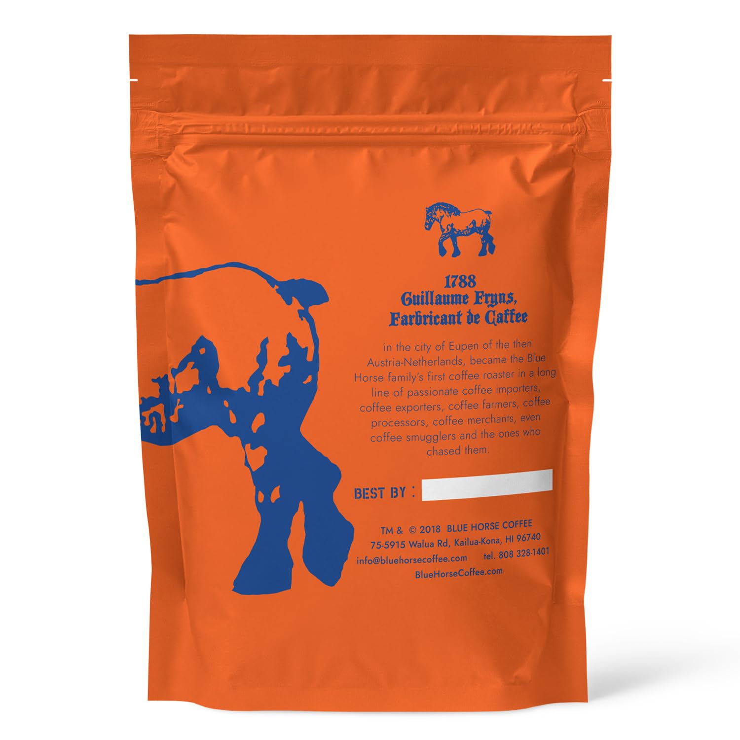 - Q: What makes Blue Horse 'Gentle Giant' Hawaiian Roast unique? A: Blue Horse 'Gentle Giant' Hawaiian Roast is crafted from premium Arabica beans, with 20% sourced from Hawaii, providing an authentic taste free from artificial ingredients. Its medium roast offers a smooth and bold flavor profile, complemented by hints of dried apple and cacao.