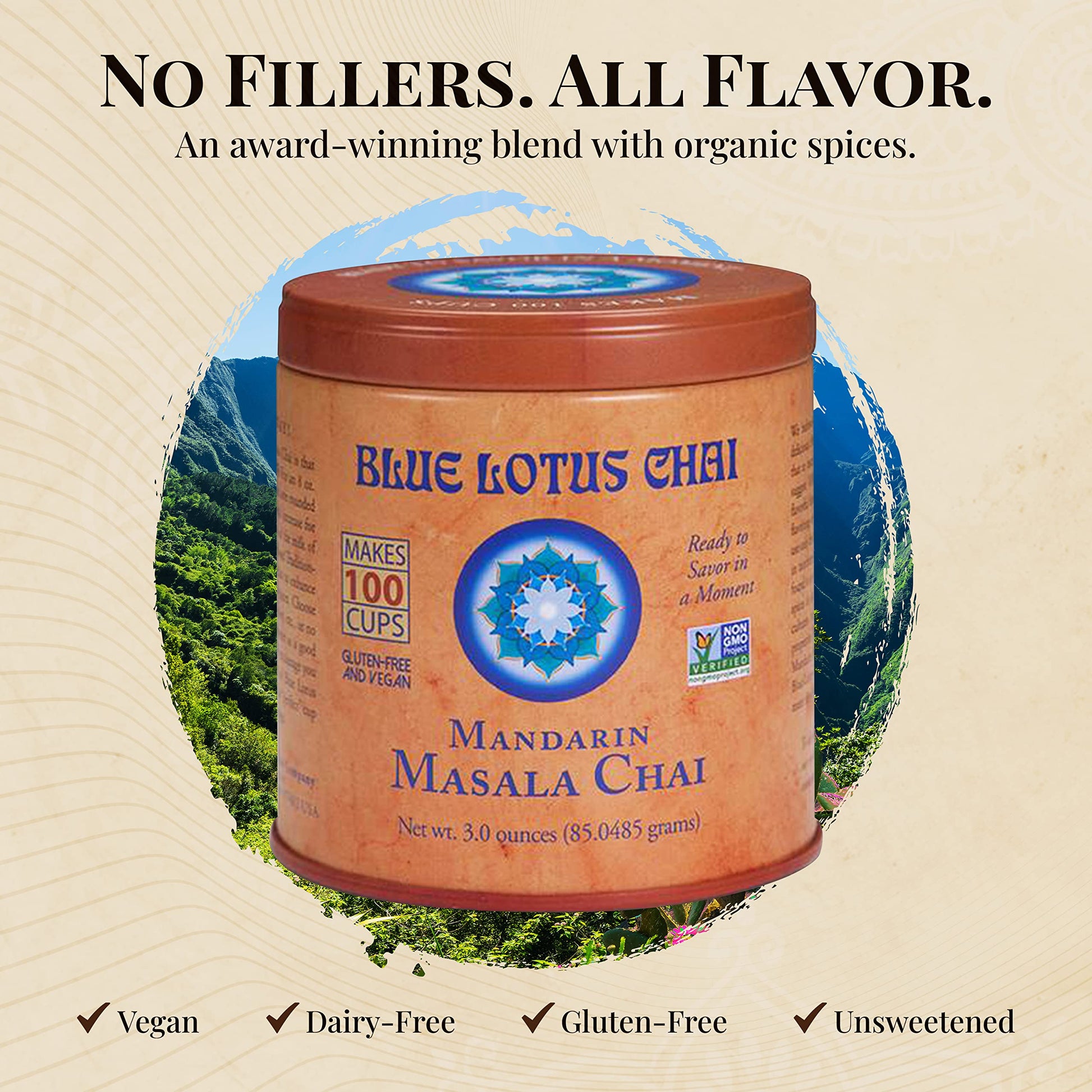 Authentic Indian Chai Made With Organic Spicesblue Lotus Chai Makes 6 Delicious Varieties Of Instant Chai. Each Variety Is Made With Flash Dried Tea And Organic Spices With No Fillers And No Fluff.The Chai Dissolves Instantly In Hot Water And Contains No Dairy, Gluten Or Sweeteners - Make It Exactly How You'D Like It.Each Tin Contains A 1/4 Tsp. Bamboo Scoop, But You Can Add As Much Or As Little As You'D Like. There Are 100 Servings (1 Bamboo Scoop) Per Tin!Blue Lotus Chai Is An Authentic Indian Chai Made By Chai Enthusiasts For Chai Enthusiasts.