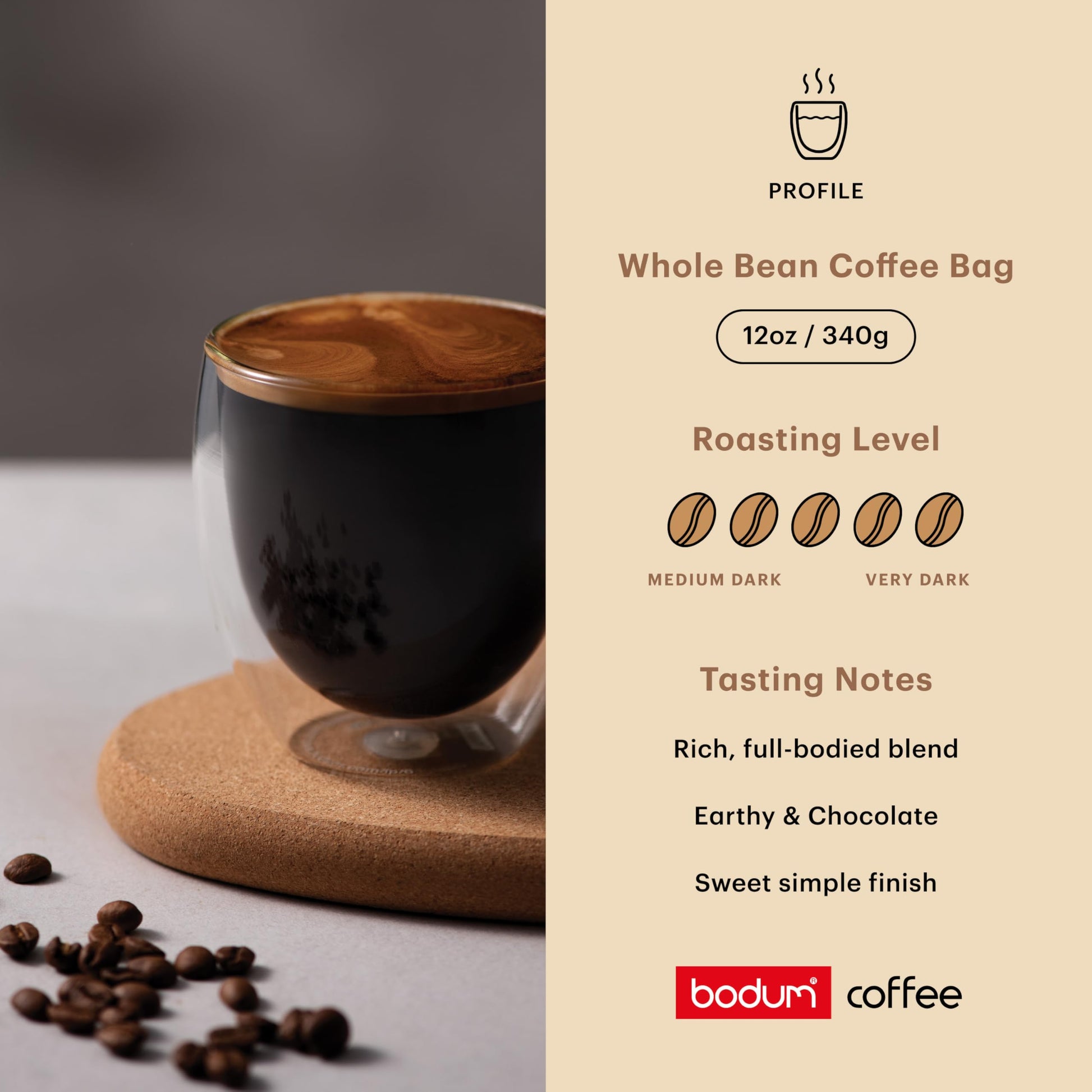 - Q: How should I brew Bodum French Roast Coffee for the best flavor? A: For the best flavor, brew Bodum French Roast Coffee using a French press, as this method is ideal for extracting the coffee's rich, aromatic qualities. Use coarsely ground beans, steep for about 4 minutes, and then press down the plunger to enjoy a smooth, full-bodied cup.
