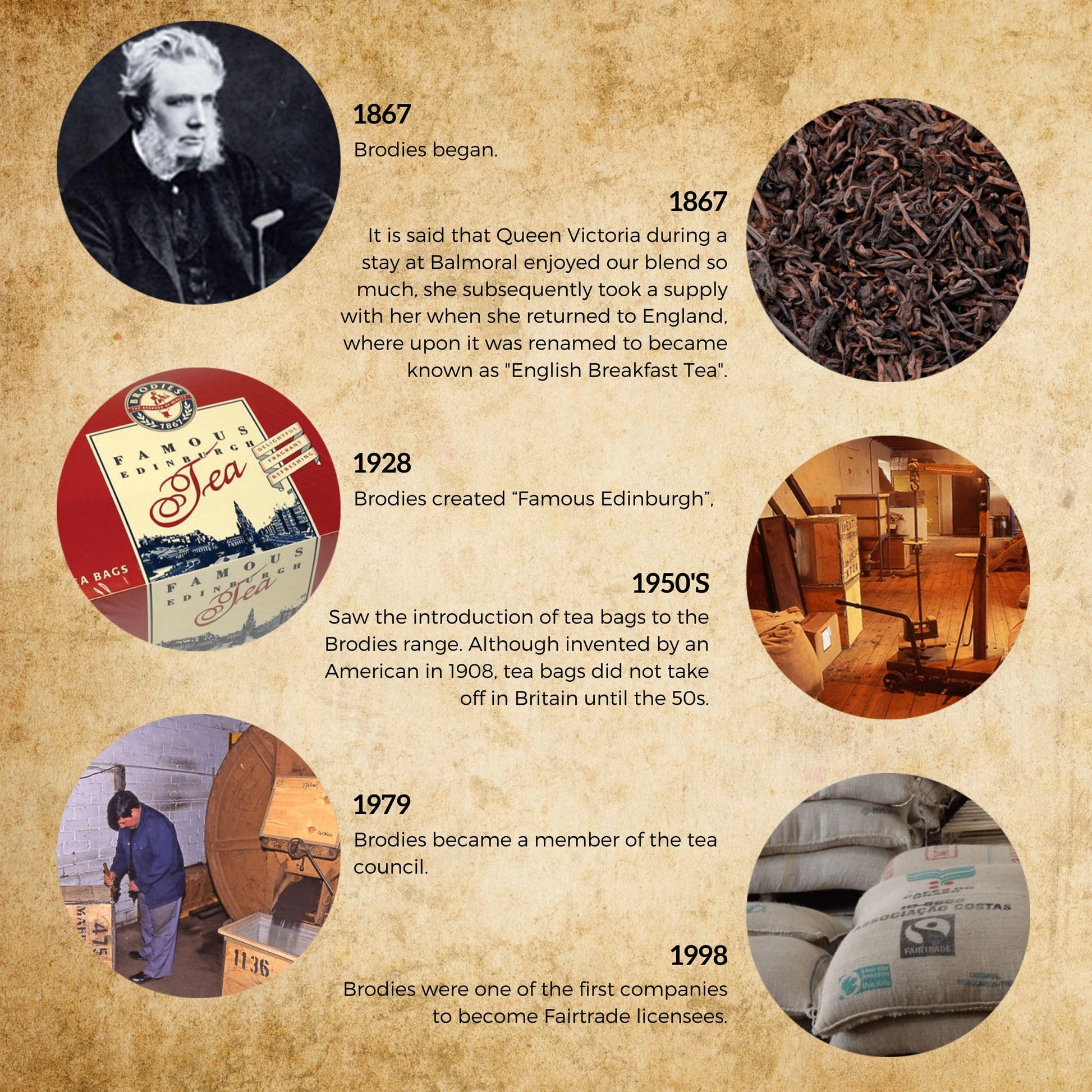 - Q: Where is Brodies Scottish Afternoon Tea sourced from? A: Brodies Scottish Afternoon Tea is imported from Scotland, where the brand has been blending tea since 1867, ensuring a heritage of quality and craftsmanship in every cup.