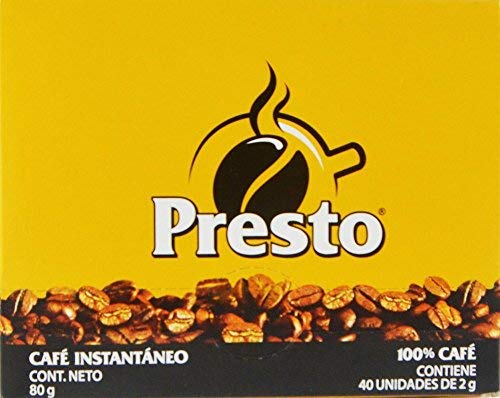 - Q: What is the size and packaging of Cafe Presto Instant Coffee? A: Cafe Presto Instant Coffee comes in a pack of 40 packets, with each packet containing 2 grams of instant coffee. This convenient packaging makes it easy to enjoy a quick cup of coffee anytime, anywhere.