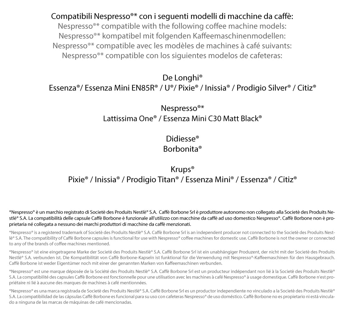 Q: Are Caffe Borbone Nespresso compatible coffee pods compatible with Vertuo machines?A: No, the Caffe Borbone Nespresso Compatible Coffee Pods are specifically designed for Nespresso Original machines and are not compatible with Vertuo machines.
