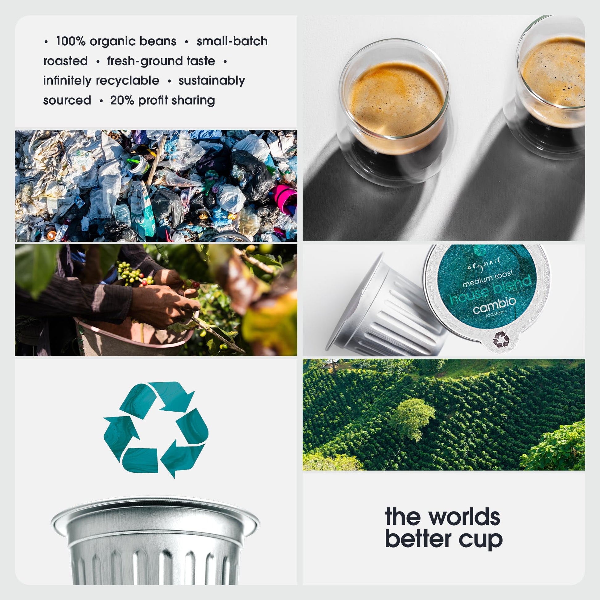 - Q: What makes aluminum coffee pods a better choice than plastic? A: Aluminum coffee pods, like Cambio Roasters House Blend, protect against moisture and oxidation, which helps retain freshness and flavor. Additionally, they are recyclable, helping to reduce plastic waste and environmental impact.
