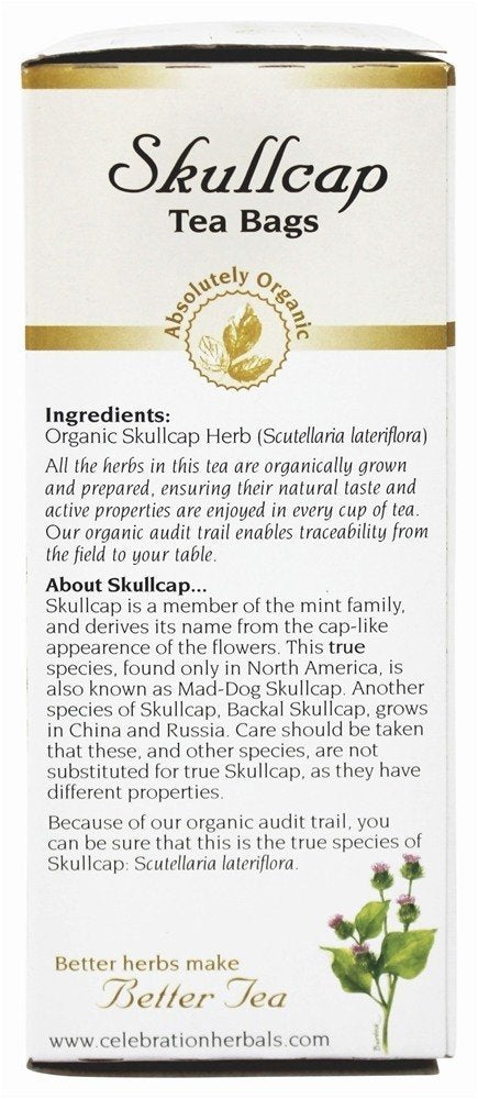 Q: Is your Skullcap tea organically sourced?A: Yes, our Skullcap tea is made from organically grown herbs that follow an organic audit trail, ensuring quality and traceability from the field to your cup.