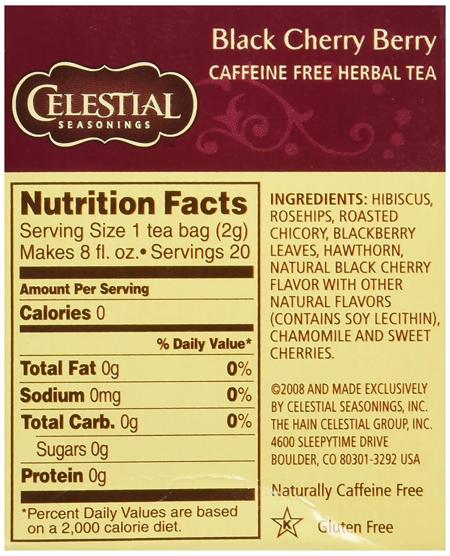Product Descriptioncelestial Seasonings Black Cherry Berry Tea, 20 Ctmanufacturer Contact Information1