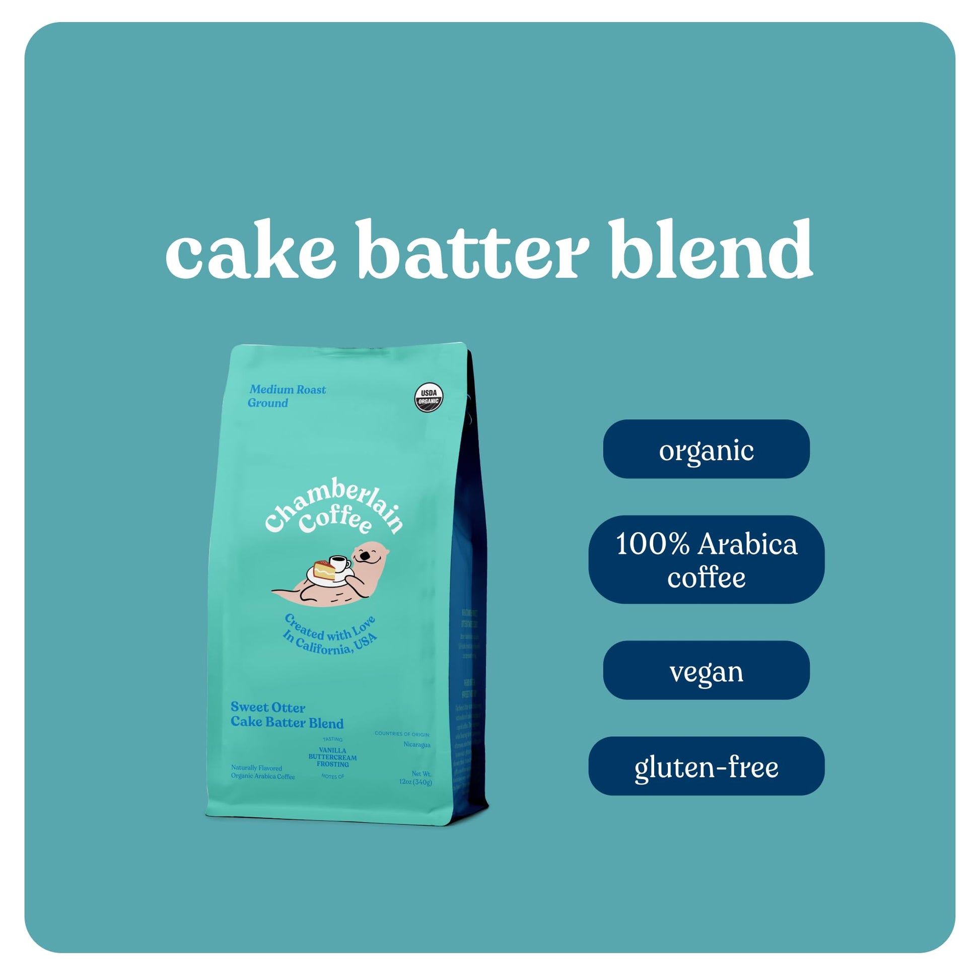 Chamberlain Coffee Sweet Otter Cake Batter Blend - Medium Roast Ground Coffee Beans With Notes Of Vanilla & Frosting - Specialty Ground Coffee From Nicaragua, Freshly Roasted In California - 12 Oz