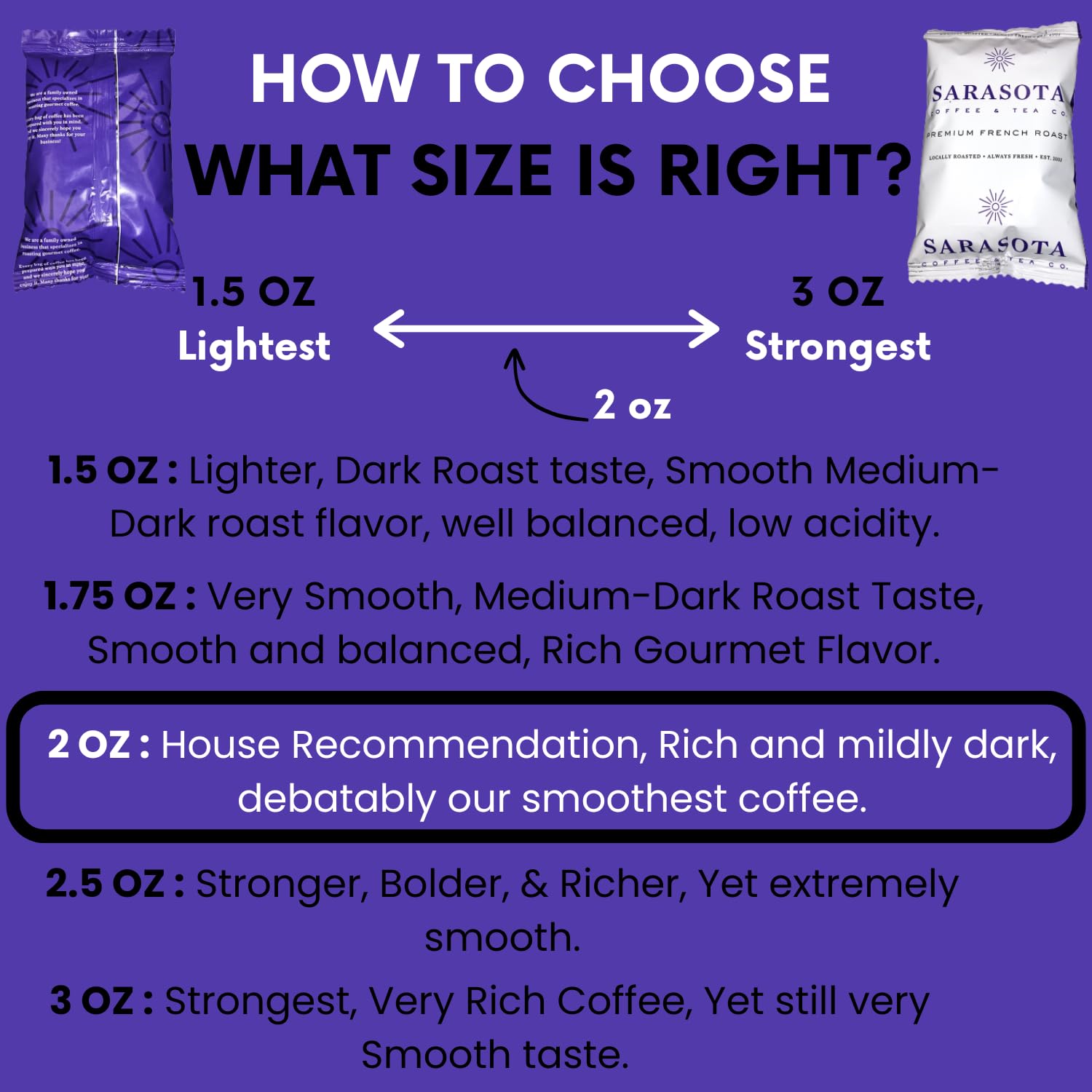 - Q: How many cups can I brew with one packet of Sarasota Coffee? A: Each packet is pre-measured to brew 10-12 cups of coffee, making it convenient for both home and commercial use. Simply use one packet in your drip coffee maker to enjoy a full pot of delicious coffee.