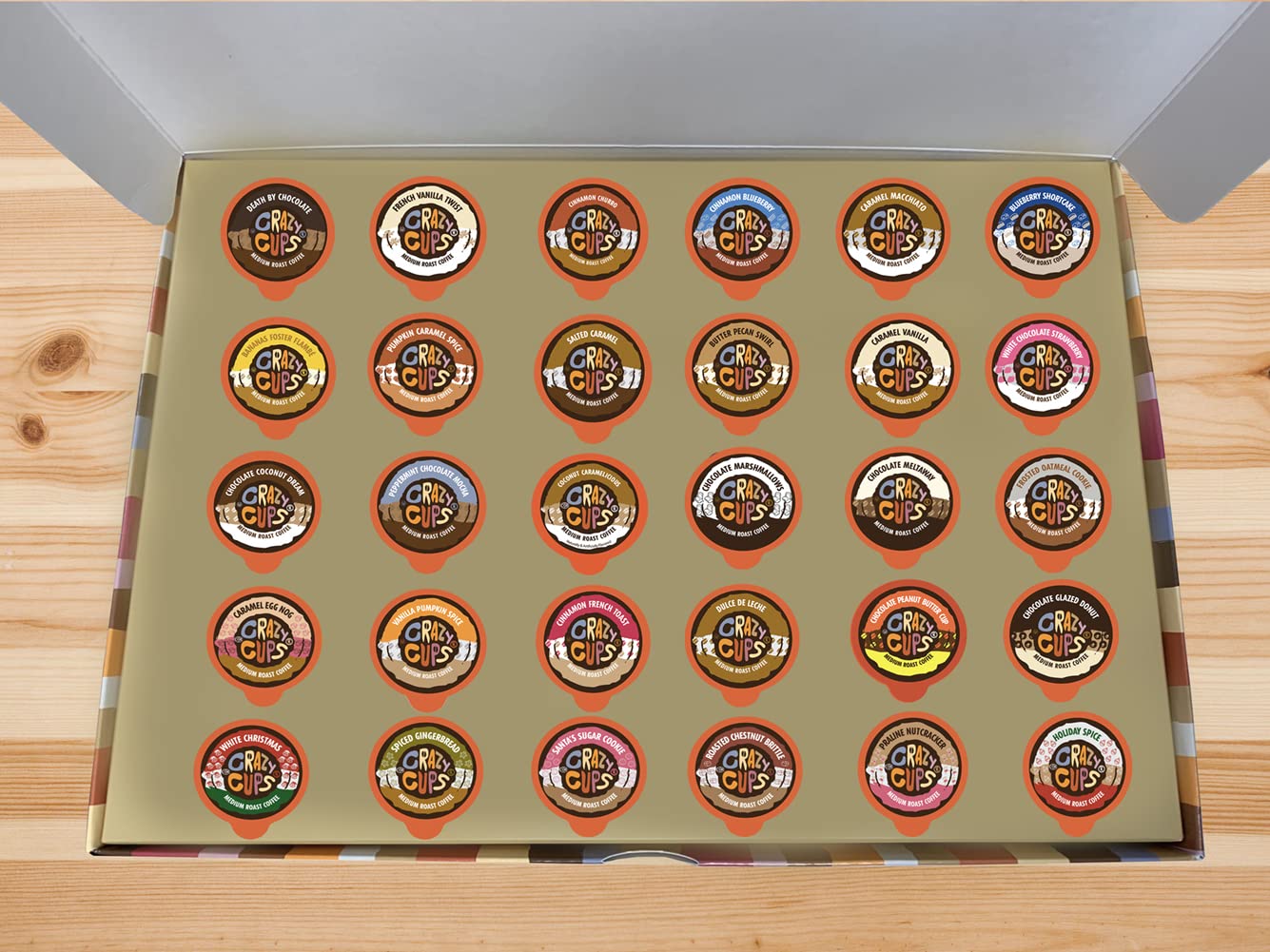 Perfect Coffee Gift Set: The Flavored Coffee Drinkers In Your Life Will Experience More Flavor With Crazy Cups. An Ideal Coffee Gift Basket Variety Pack Including Our Most Indulgent And Adventurous Flavors In A Gorgeous Gift Box | More Coffee - Our Coffee Pods Have 30% More Coffee In Every Capsule Than Average Flavored K Cups. Made To Savor The Flavor By Brewing Hot Or As A Refreshing Iced Coffee | Coffee For K Cups Machines: Our Single-Serve Coffee Pods Are Compatible With Any Coffee Machine That Brews Flavored K Cups, Including The Keurig 2.0 Brewer. Our Single Serve Pods For Keurig Machines Are Packaged In Recyclable Capsules | Top Quality Ingredients: Made With 100% Arabica Coffee Beans. Our Coffee Flavored Pods Are Calorie-Free, Gluten-Free, Keto Friendly, Vegan, Kosher, And Pareve. Start Your Day Right With Our Sugar Free Coffee Containing No Added Sweetener | Discover New Flavors: Our Coffee Gift Basket And Variety Packs Are A Great Way To Explore And Discover New Coffee Flavors Without Buying Full Boxes Of Each. Look For Our Variety Packs And Individual Flavors. Not Affiliated With Keurig Or Green Mountain.