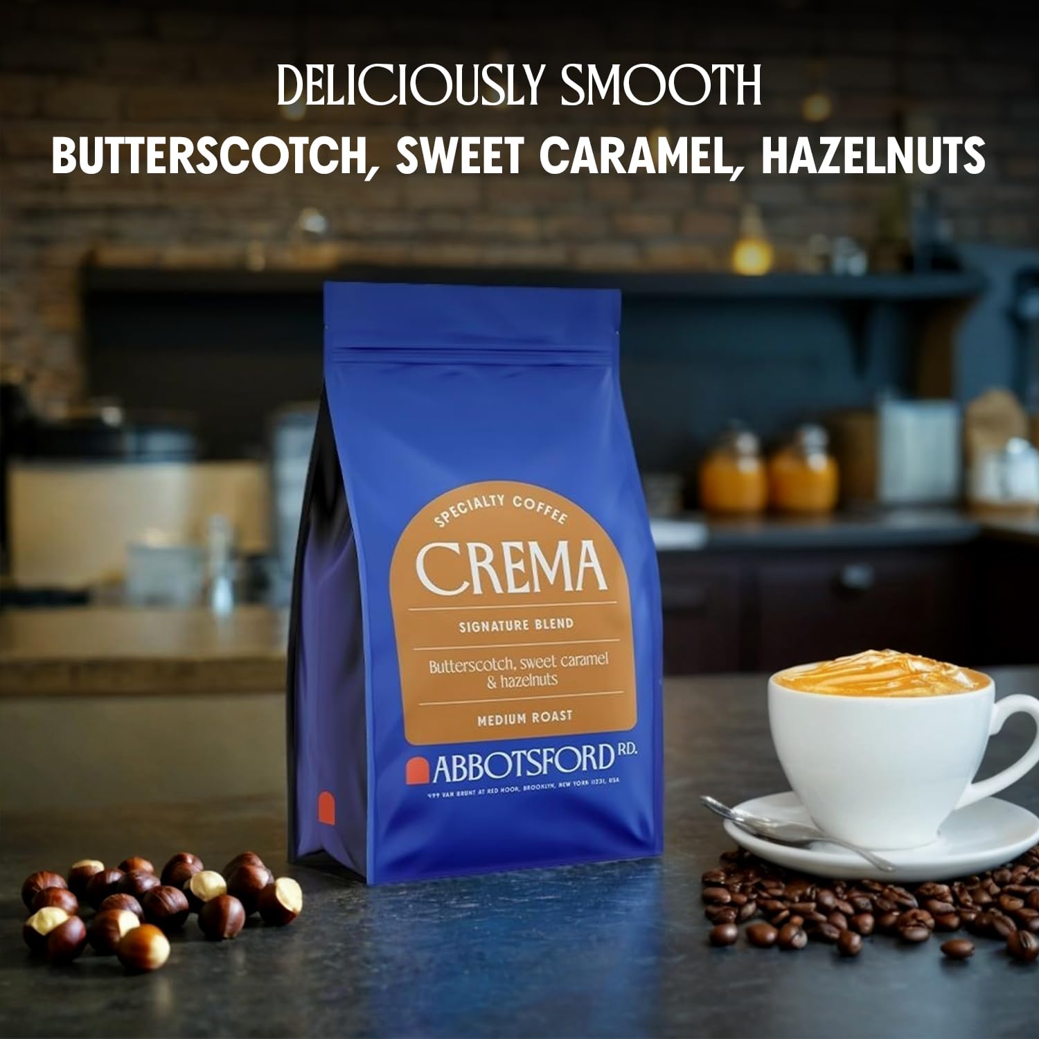 Q: What flavors can I expect from Crema Coffee Whole Bean?A: Crema Coffee Whole Bean features a delightful blend of butterscotch, sweet caramel, and hazelnut flavors, providing a rich and smooth coffee experience.