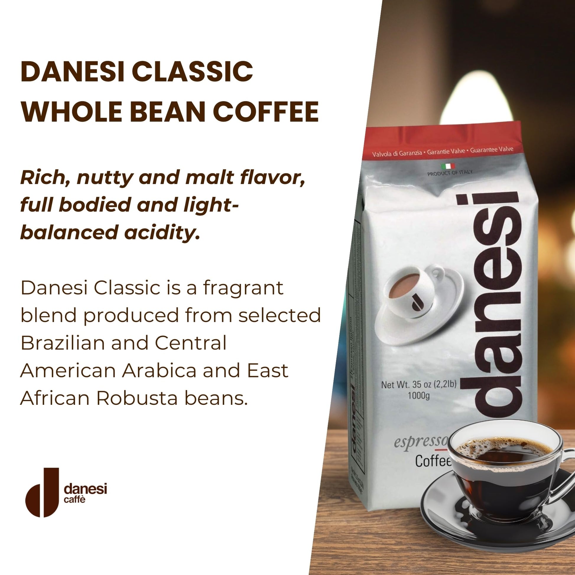 - Q: What are the flavor notes of Danesi Caffe coffee beans? A: Danesi Caffe coffee beans feature a depth of flavor with magical hints of nuttiness and maltiness. The medium roast provides a smooth yet complex taste that is perfect for espresso lovers.