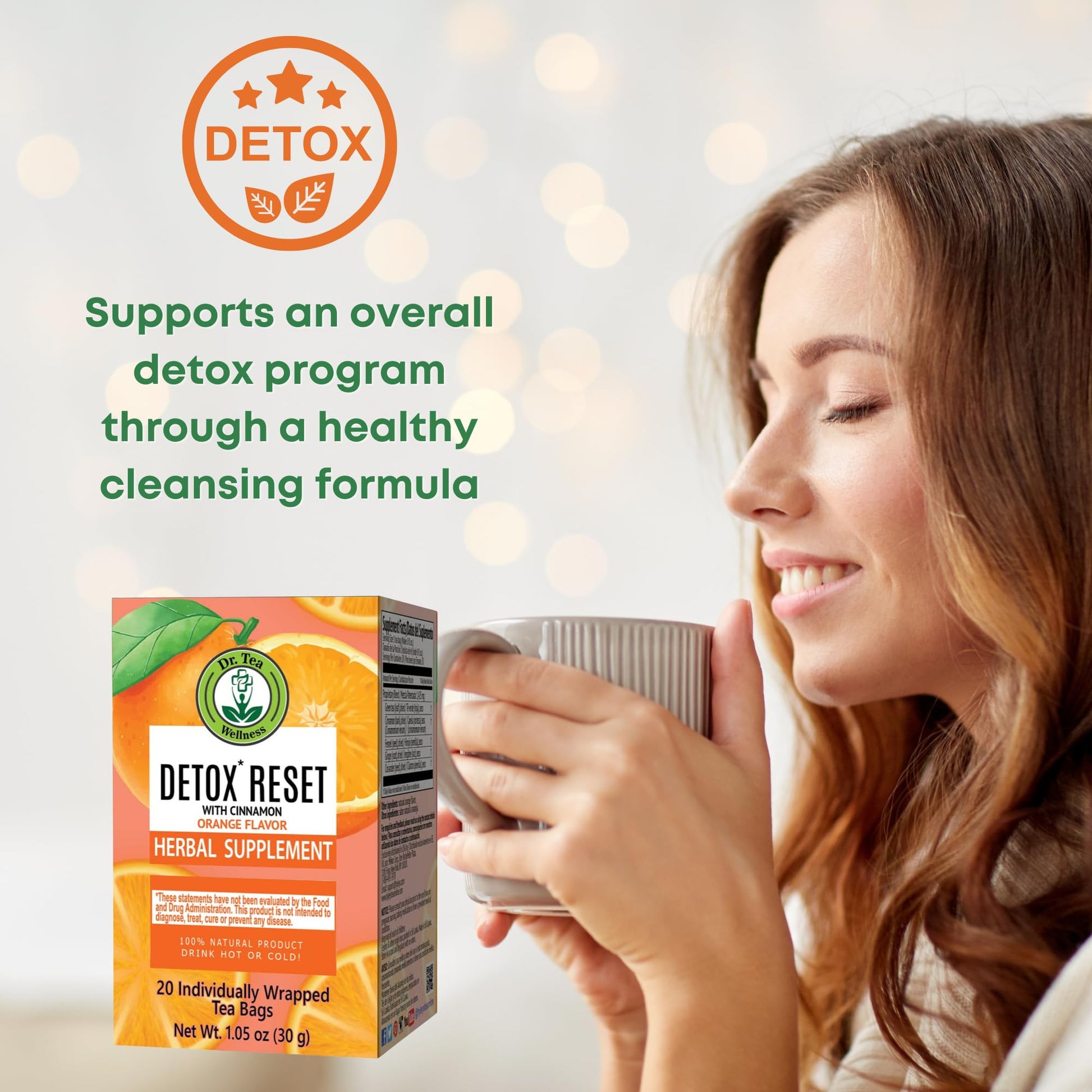 Q: What are the main flavors in Dr. Tea Detox Reset Tea?A: Dr. Tea Detox Reset Tea features a delightful combination of refreshing orange flavor complemented by a hint of spicy cinnamon, creating a unique and enjoyable taste experience.