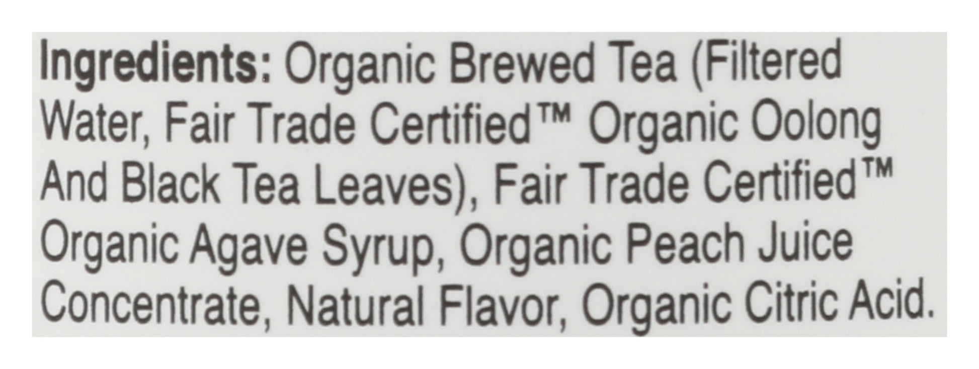 Q: What are the ingredients in Eat The Change Just Ice Tea Organic Peach Oolong Tea?A: Eat The Change Just Ice Tea Organic Peach Oolong Tea is made from high-quality organic peach oolong tea, ensuring a refreshing and flavorful beverage. It is also kosher-certified, making it suitable for a variety of dietary needs.