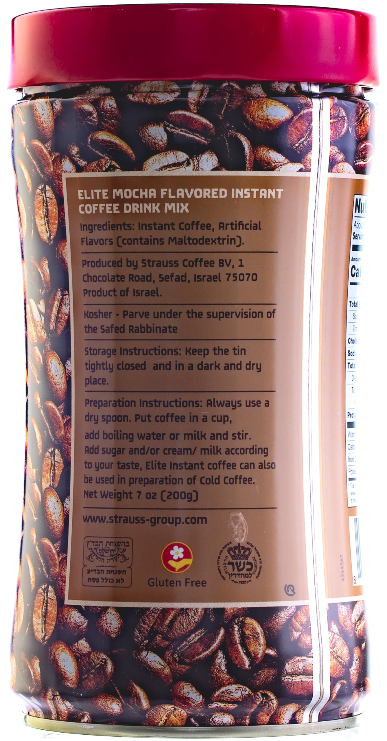 - Q: Is Elite Instant Coffee (Mocha) suitable for individuals with dietary restrictions? A: Yes, Elite Instant Coffee (Mocha) is certified kosher and gluten-free, making it a suitable choice for those with gluten sensitivities or dietary restrictions, except during Passover.