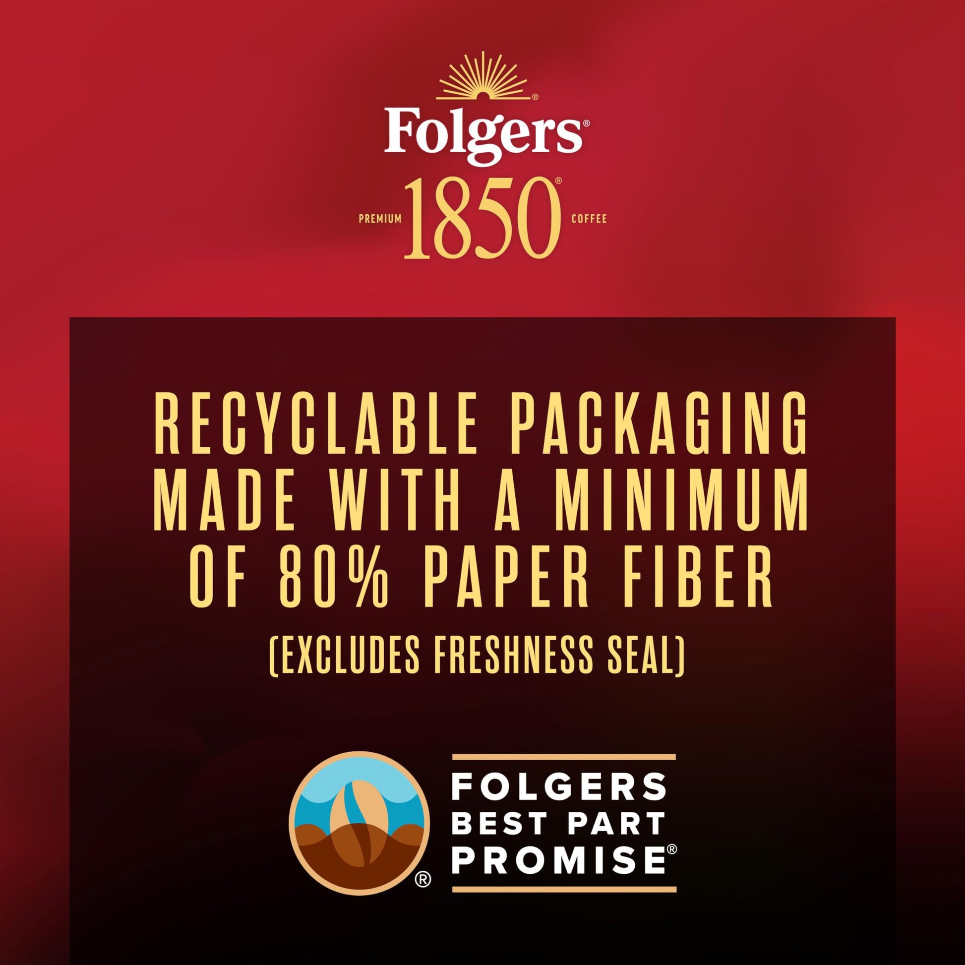 Q: Is the packaging of Folgers 1850 Trailblazer recyclable?A: Yes, the packaging is designed for paper recycling and is made with a minimum of 80% paper fiber, excluding the freshness seal. This reflects Folgers' commitment to sustainability.