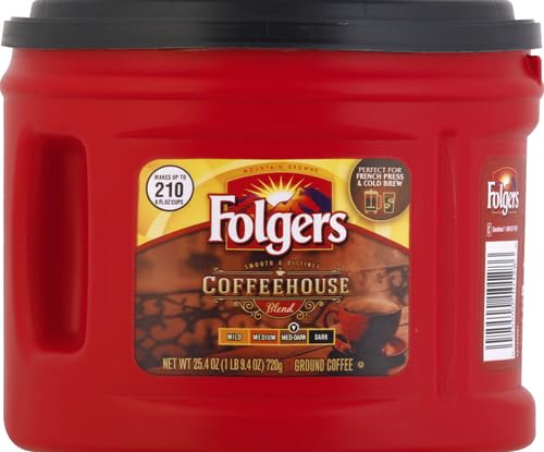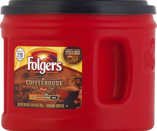 Q: Is Folgers Coffeehouse Blend suitable for all coffee brewing methods?A: Yes, Folgers Coffeehouse Blend is ground coffee that can be used in various brewing methods, including drip coffee makers, French presses, and pour-over systems, allowing for versatility in how you enjoy your coffee.
