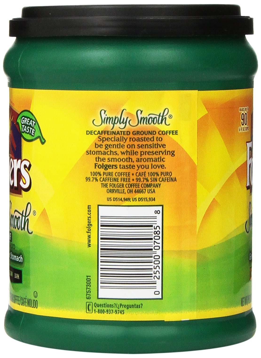 Q: Is Folgers Simply Smooth Decaf Ground Coffee suitable for all coffee makers?A: Yes, Folgers Simply Smooth Decaf Ground Coffee is pre-ground and compatible with various brewing methods including drip coffee makers, French presses, and single-serve machines.