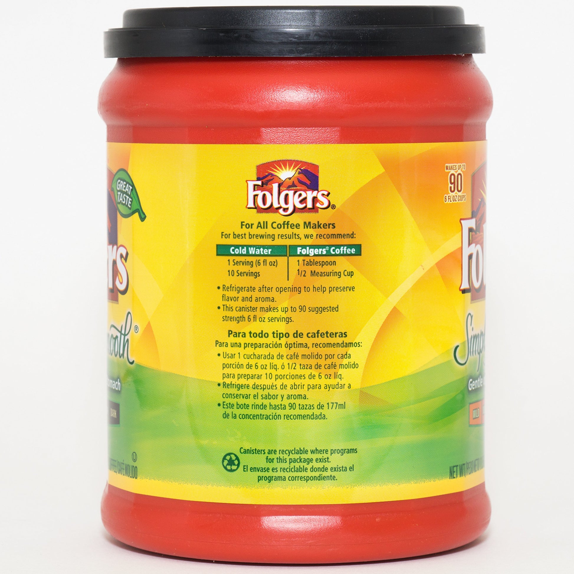 Q: Is Folgers Simply Smooth Ground Coffee suitable for all coffee brewing methods?A: Yes, Folgers Simply Smooth Ground Coffee is versatile and can be used with various brewing methods, including drip coffee makers, French presses, and pour-over systems.