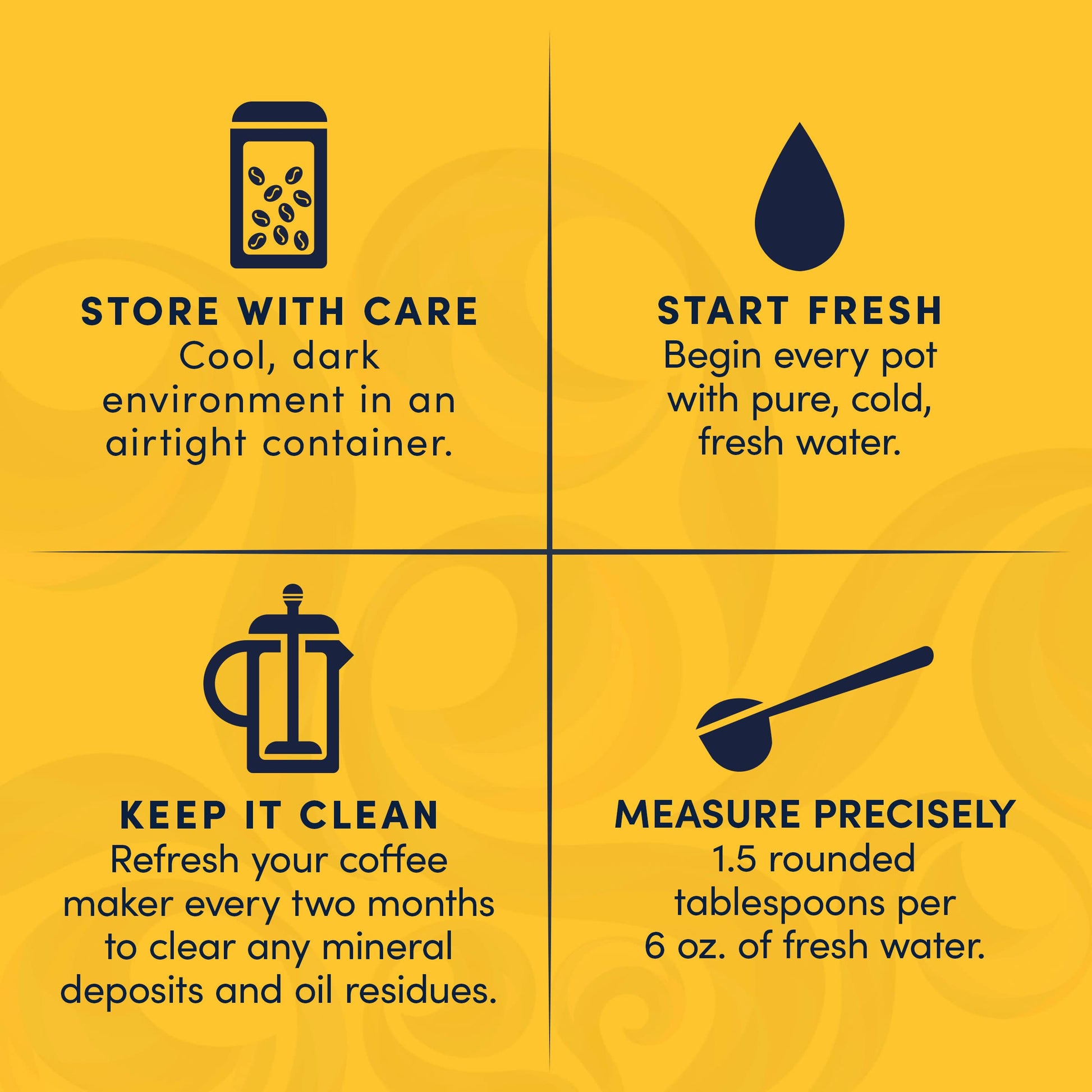 - Q: How do I brew Gevalia Coarse Ground Coffee for the best taste? A: For optimal flavor, you can brew Gevalia Coarse Ground Coffee using a French press, pour-over brewer, or moka pot. This medium roast is versatile and can be used in any drip coffee maker as well.