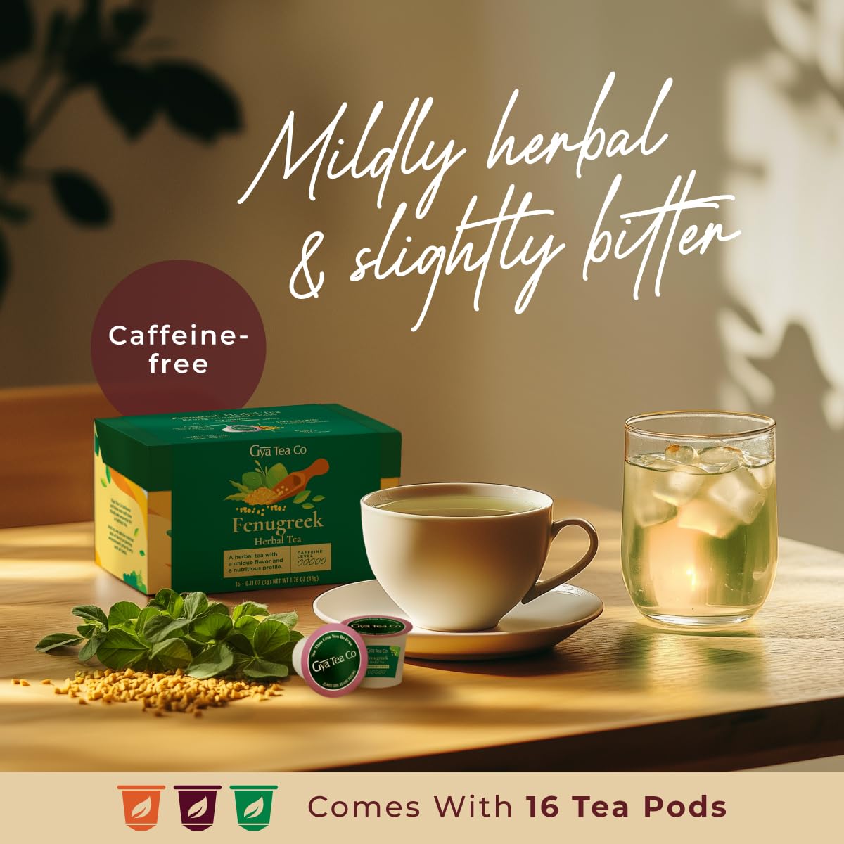 Q: How can I prepare Gya Tea Co Fenugreek Herbal Tea Pods?A: To prepare the tea, simply place a pod into your brewer, hit 'brew', and enjoy a flavorful cup of herbal tea in no time. Detailed brewing instructions are included on the packaging.