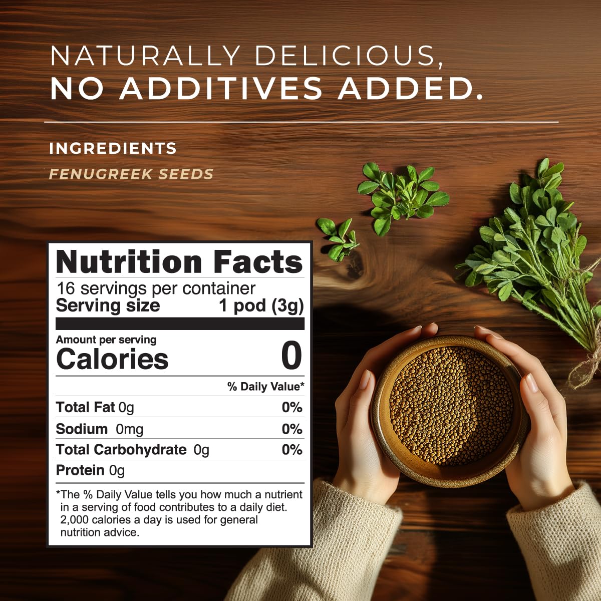 Made From Methi Seeds From Egypt, Our Fenugreek Herbal Tea Do Not Contain Any Artificial Ingredients, Coloring And Flavors. Each Tea Bag Is Filled With 100% Pure Natural Ingredients That Are Non-Gmo And Manually Harvested With Care, So That You Can Enjoy A Fresh, Authentic And Wholesome Tea Experience. Enjoy This Herbal And Mild Decaffeinated Whenever You Like In The Morning, Afternoon Or Right Before Bed. This Fenogreco Tea Is Known For Its Potential Benefits For Skin And Hair Health. However, Always Drink Tea In Moderation. Feel Nourished And Revived With This Distinctively Flavored Tea De Fenogreco. Designed For Convenience, Our Fenugreek Tea Is Quick And Easy To Prepare, Allowing You To Enjoy A Flavorful Tea Decaffeinated Cup In No Time. Each Box Contains 16 Pods, Providing Excellent Value For Money. Our Packaging Also Includes Detailed Brewing Instructions On The Box So You Can Enjoy Your Beverage With Ease. A Herbal Decaffeinated Tea Brew That Nourishes Your Spirit, It Is A Wonderful Gift To Share With Loved Ones Or Enjoy By Yourself. Whether Youre At Work, Or Gifting It For The Holidays, Our Fenugreek Decaf Tea Will Offer A Gentle Uplift To Your Day.