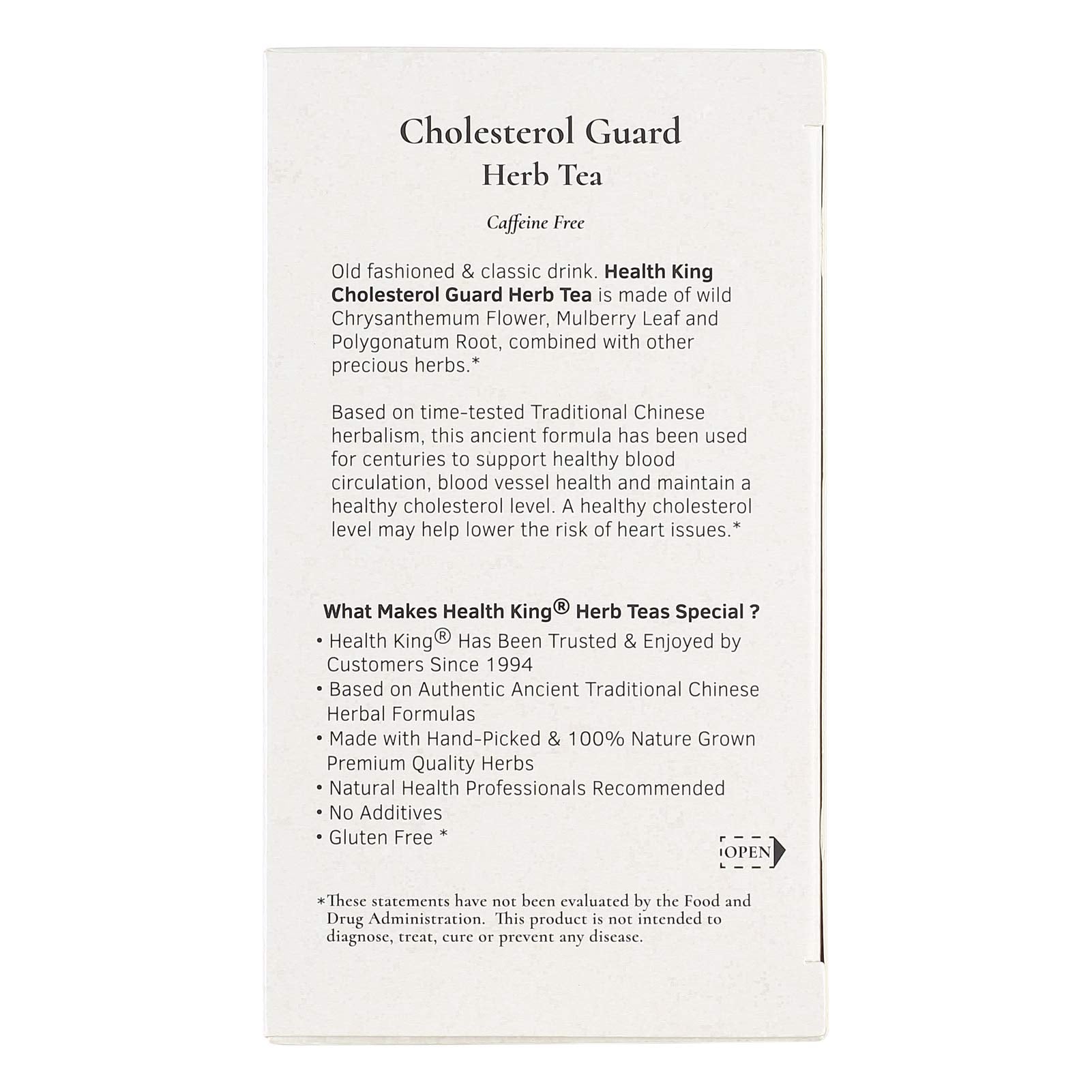 Disperse Stagnancy, Soften Blood Vessels. 100% Natural. Cholesterol Guard Herb Tea Is Made Of Chrysanthemum, Rhubarb, Jujube And Other Precious Herbs Nicely Flavored With Jasmine. These Herbs Contain Adenine, Choline, Vitamins A And B, Amino Acids, Glycos