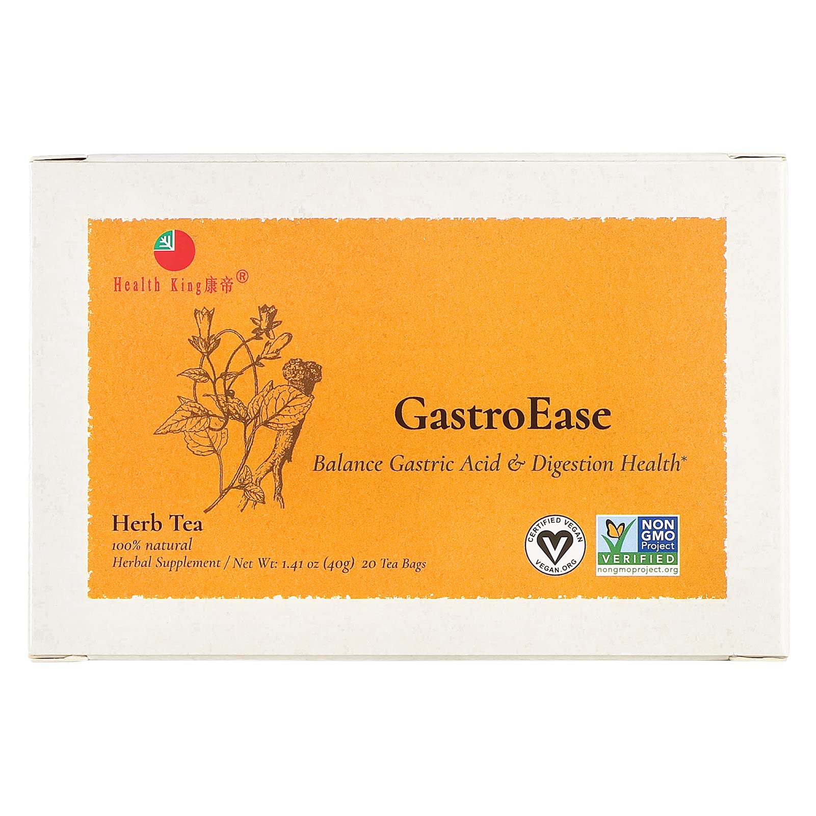 Health King Gastroease Herb Tea, Teabags, 20 Count Box