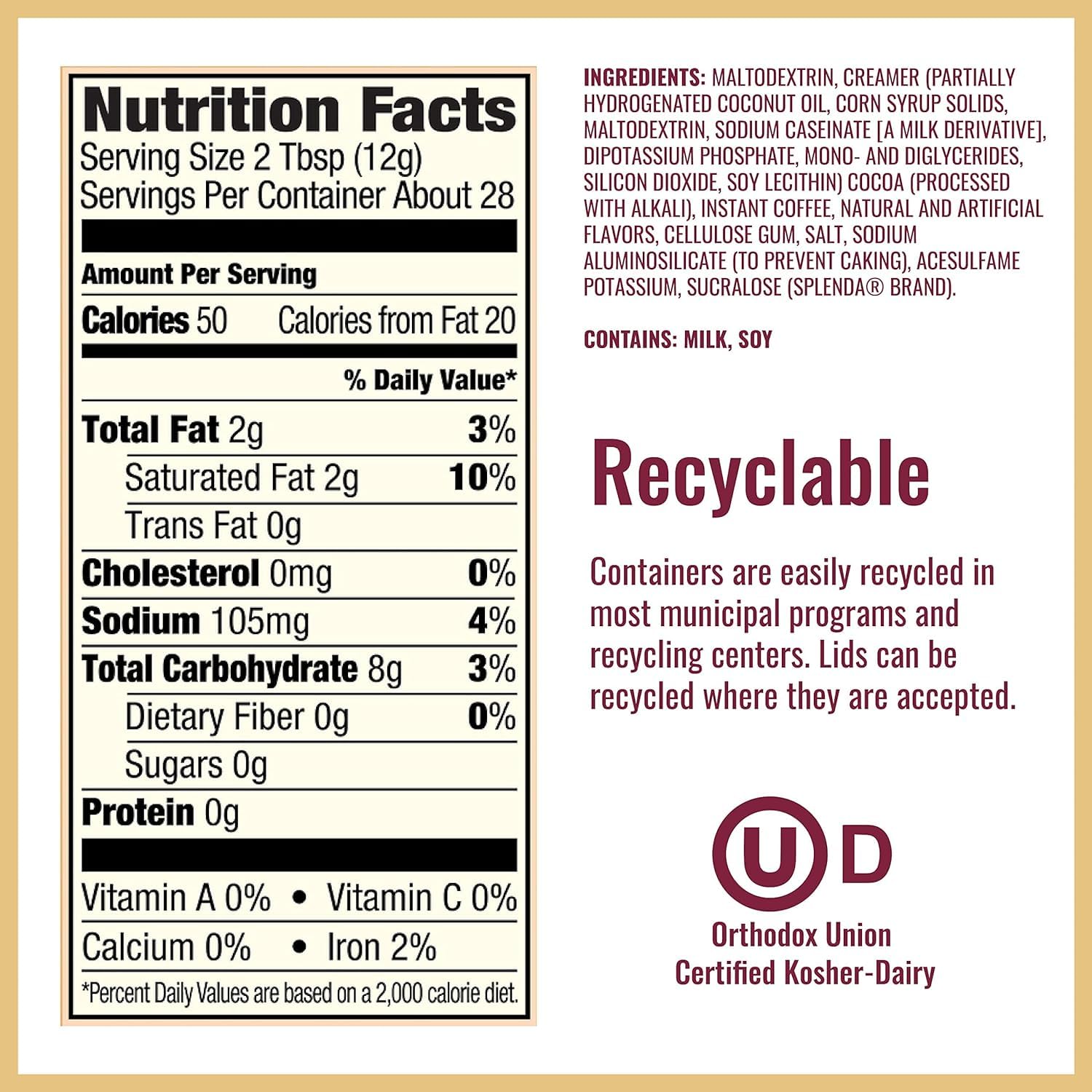 Q: Is the Sugar-Free Double Mocha cappuccino suitable for low-carb diets?A: Yes, Hills Bros. Sugar-Free Double Mocha cappuccino contains 0g of sugar and only 8g of carbs per serving, making it a suitable option for low-carb diets.
