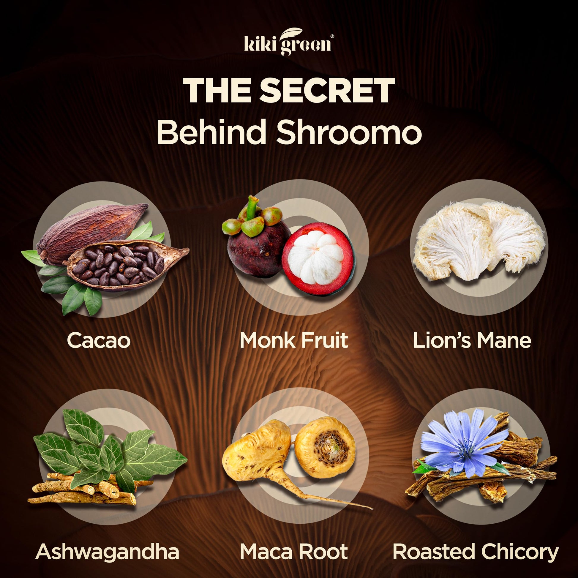 Q: What are the main ingredients in Shroomo Mushroom Coffee Alternative?A: Shroomo Mushroom Coffee Alternative features a master blend of Lion's Mane, Ashwagandha, Maca Root, Roasted Chicory, and Monk Fruit, combined with ceremonial grade cacao to enhance mental clarity and energy.