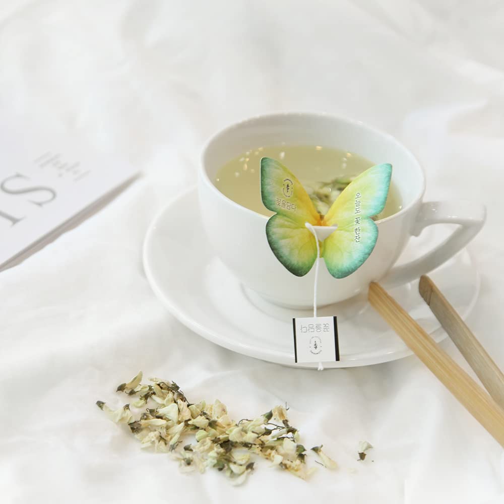 Q: What makes KKOKDAM tea bags a unique gift for tea lovers?A: KKOKDAM tea bags come with butterfly-shaped holders that not only enhance the visual appeal but also add a unique touch to the tea-drinking experience. They are perfect as elegant gifts for special occasions like Mother's Day.
