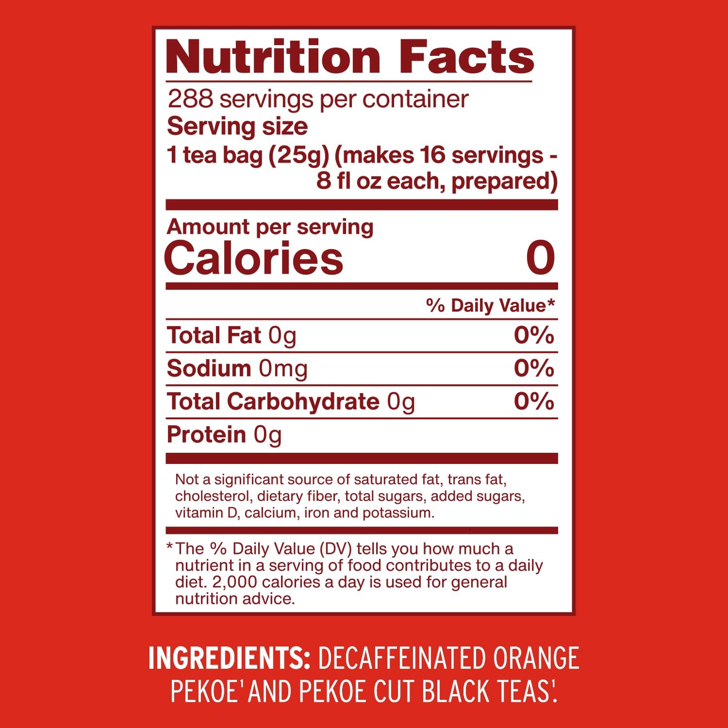Q: How many tea bags are included in the Luzianne box?A: Each box of Luzianne Decaffeinated Tea contains 18 individual tea bags, allowing you to brew multiple gallons of delicious iced tea.