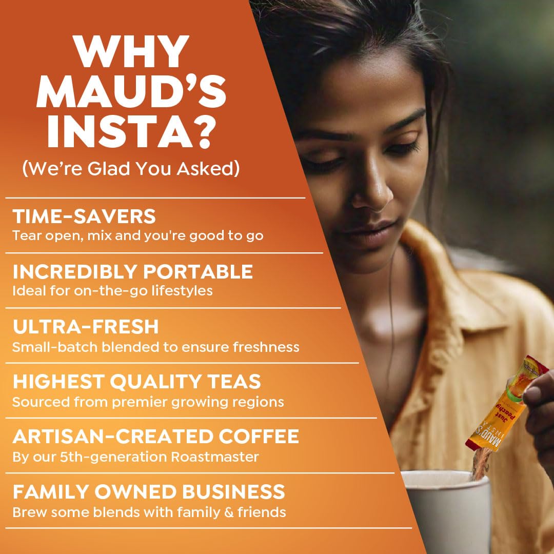 Q: Can I use Maud's Instant Peach Tea without a coffee machine?A: Absolutely! Maud's Instant Peach Tea is designed for convenience and requires no coffee or tea machines. Just add hot or cold water directly to the stick pack.