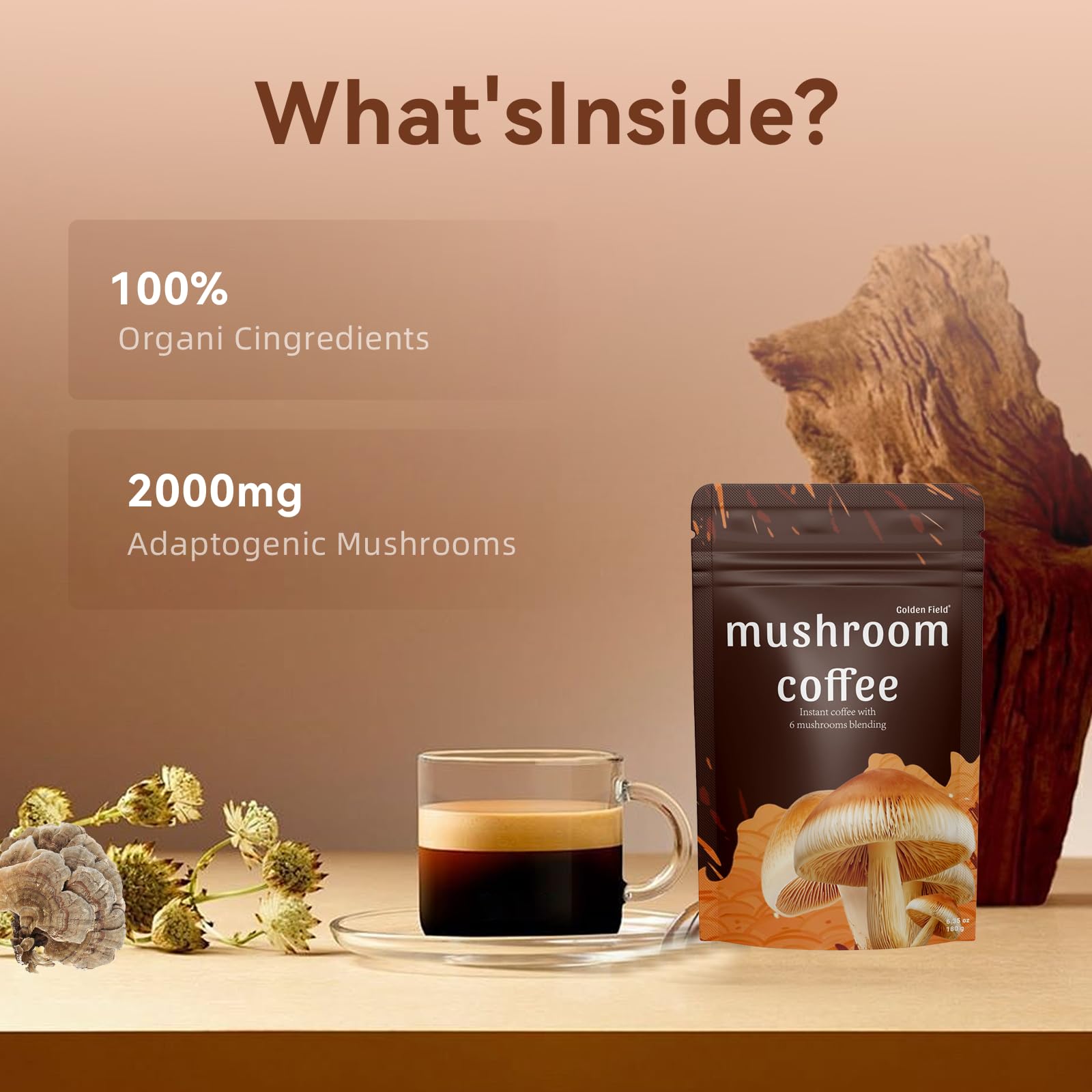 Indulge In A Delightful And Nourishing Coffee Experience With Golden Field Mushroom Coffee. This Premium Blend Combines The Rich Flavor Of Organic Arabica Instant Coffee With The Potent Benefits Of A 6-Mushroom Extract Blend. Infused With Extracts From Turkey Tail, Lion'S Mane, Cordyceps, Reishi, And More, Each Sip Offers A Unique Taste And Potential Wellness Support. The Convenient Instant Powder Format Allows You To Enjoy A Warm, Comforting Cup Anytime, While The Addition Of Coconut Milk Lends A Creamy Texture. With 30 Servings Per 6.35 Oz / 180G Pack, This Mushroom Coffee Is A Guilt-Free Indulgence For Your Daily Ritual. Embrace The Fusion Of Flavor And Functional Ingredients With Every Satisfying Sip.