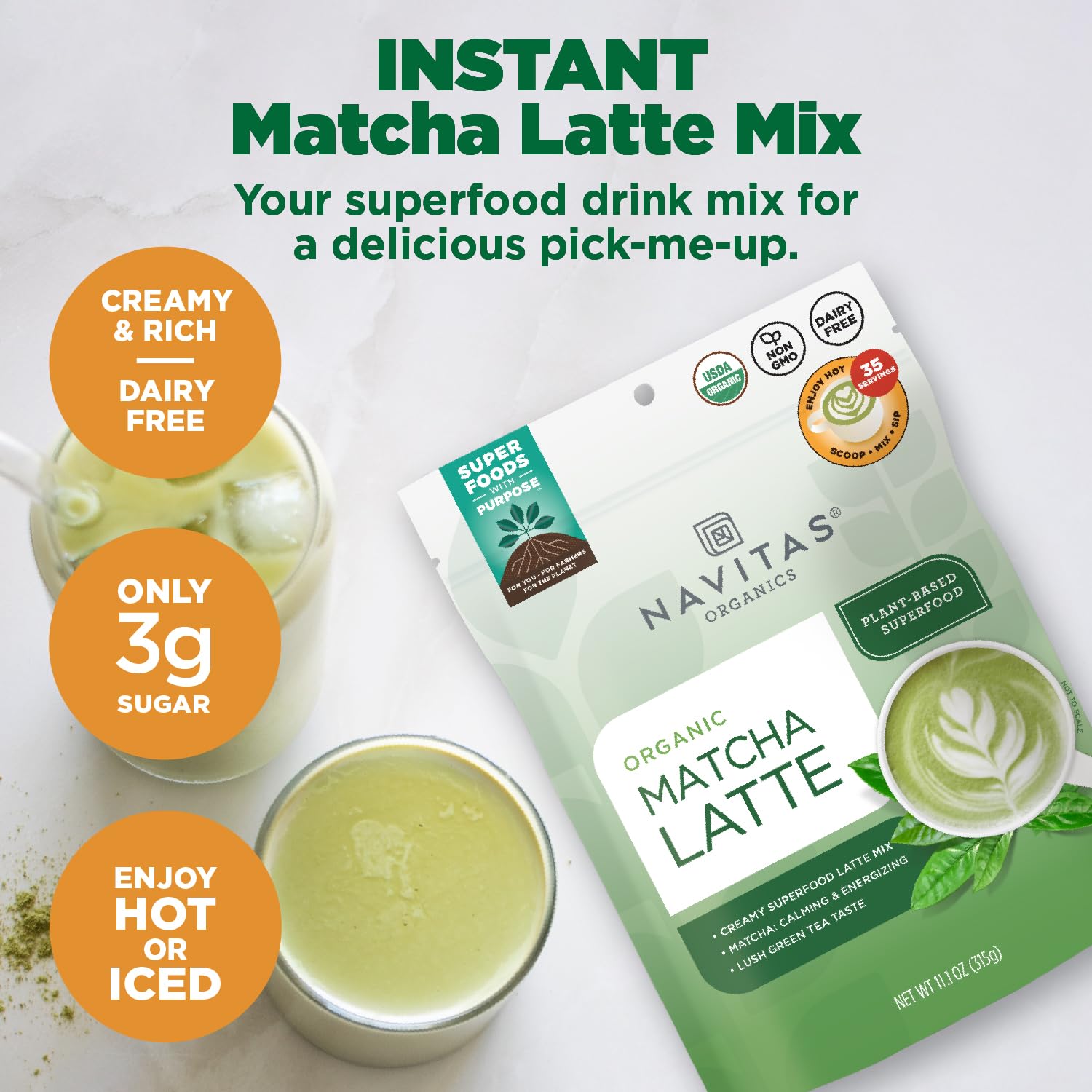Q: What is Navitas Organics Matcha Latte made of?A: Navitas Organics Matcha Latte is made from premium matcha, coconut creamer, and a touch of sweetness, creating a nutritious and dairy-free instant blend.