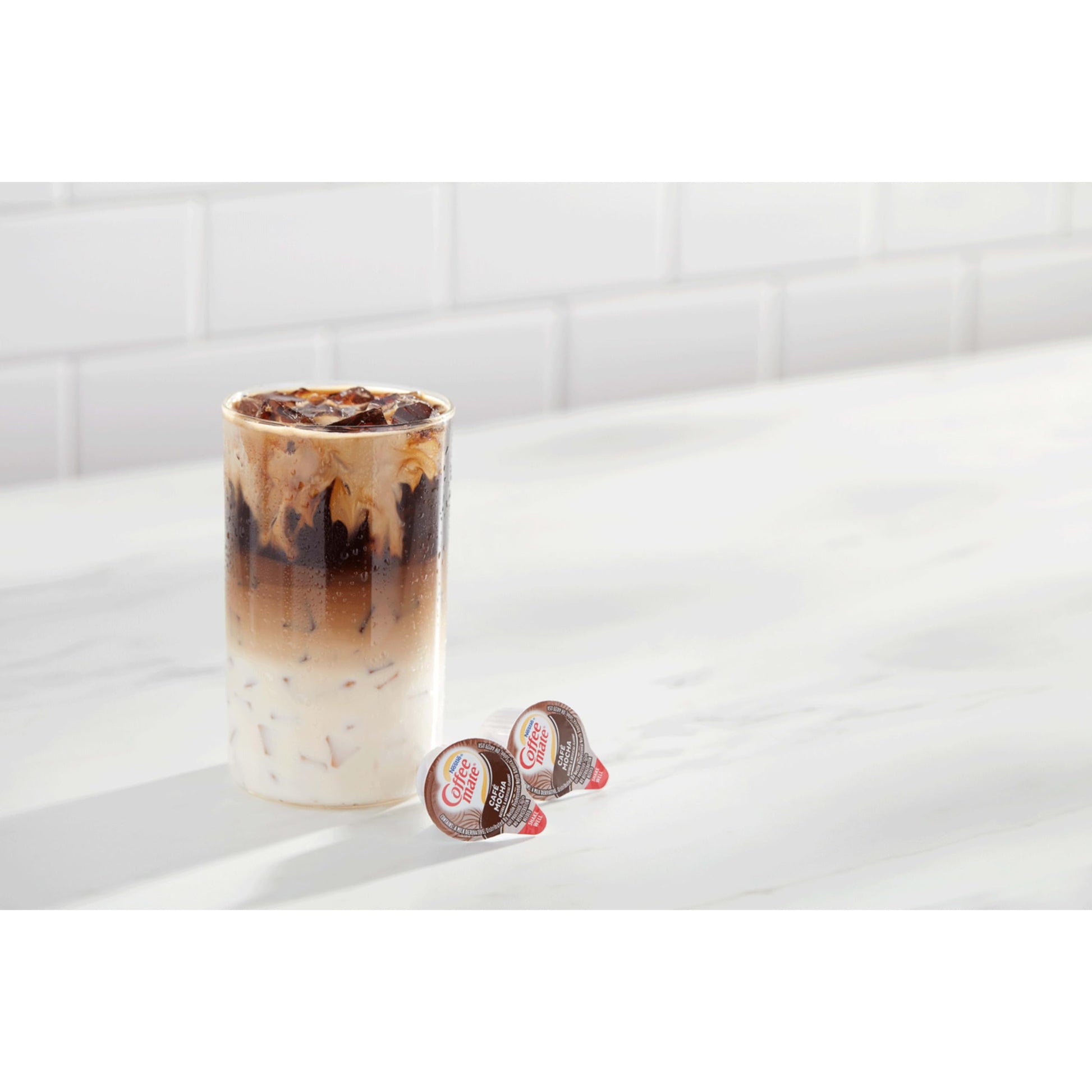 Nestle Coffee mate Café Mocha flavored liquid creamer singles are simply delightful. Each cup contains a flavorful, rich and creamy chocolate indulgence that will enhance your cup of coffee. The creamer singles are packaged in a convenient dispenser box which keeps the counter clean, organized, and displayed beautifully. These creamer singles don’t need to be refrigerated and can retain their irresistible flavor at room temperature for up to 9 months. Easy to use - shake, open and pour. Non-Dairy + Lactose-Free + Cholesterol-Free + Gluten-Free + Kosher Dairy. Coffee mate is America's #1 coffee creamer. With a variety of flavors and formats, Coffee mate has your coffee creamer needs covered. Delight your employees, customers and guests by offering Coffee mate liquid creamer in your workplace, break room or kitchen.