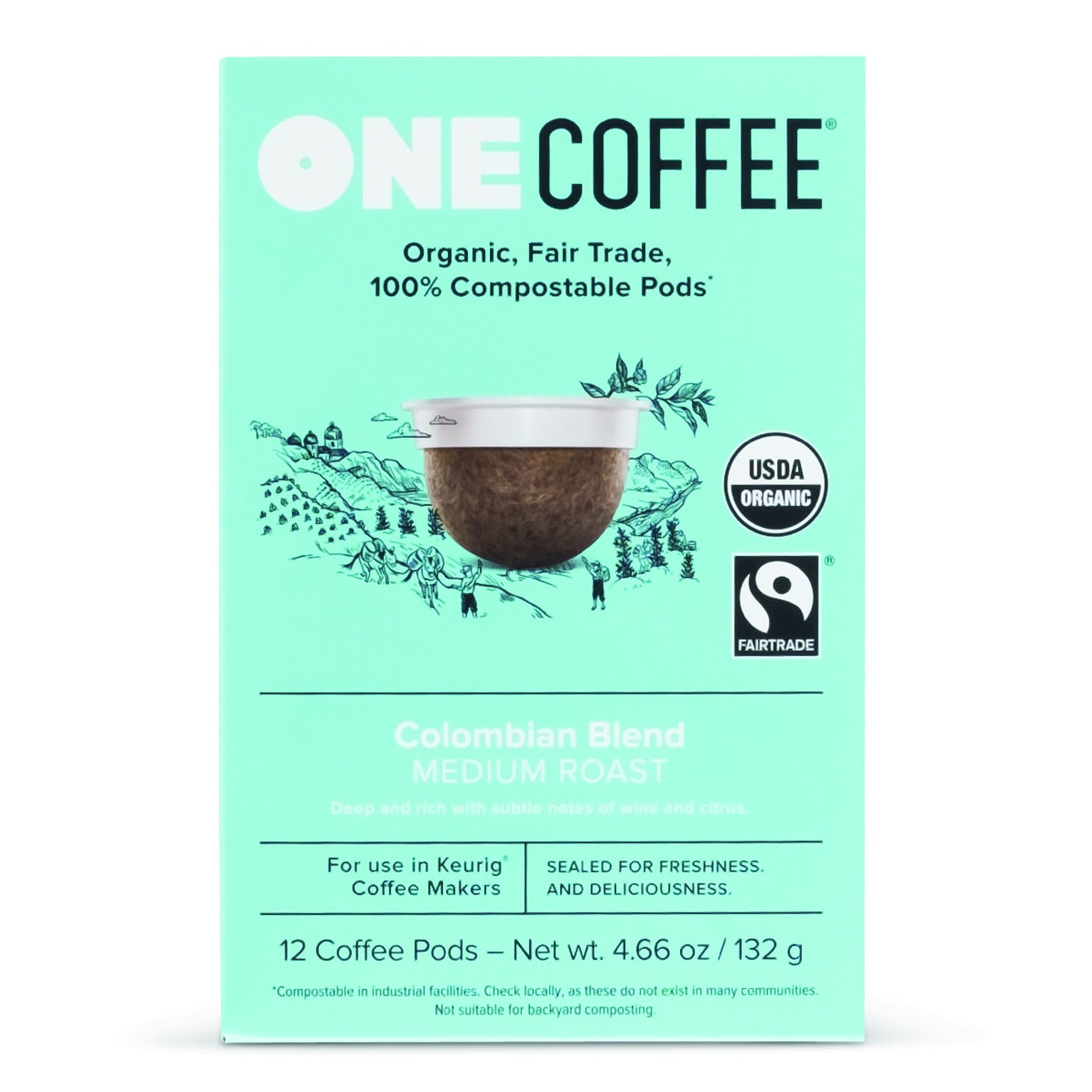 Onecoffee Organic Colombian Blend 12 Count Single Serve Coffee 100% Compostable K Cup For Keurig Machines
