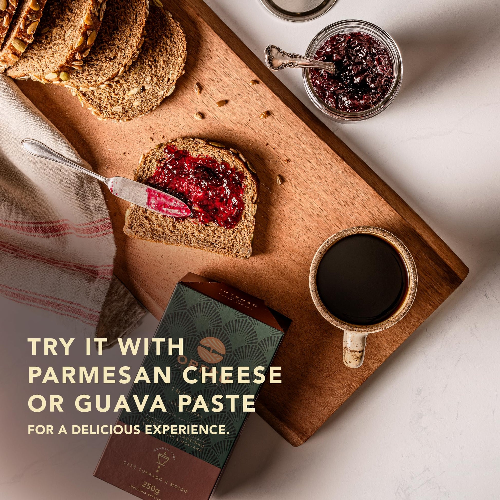 • Q: What makes Orfeu's Special Coffee Intense different from other coffees? A: Orfeu's Special Coffee Intense stands out due to its unique blend of 100% Arabica beans, expertly dark-roasted to highlight bold flavors and an aromatic profile that includes notes of toasted caramel and fruit jam, providing a sophisticated taste experience.