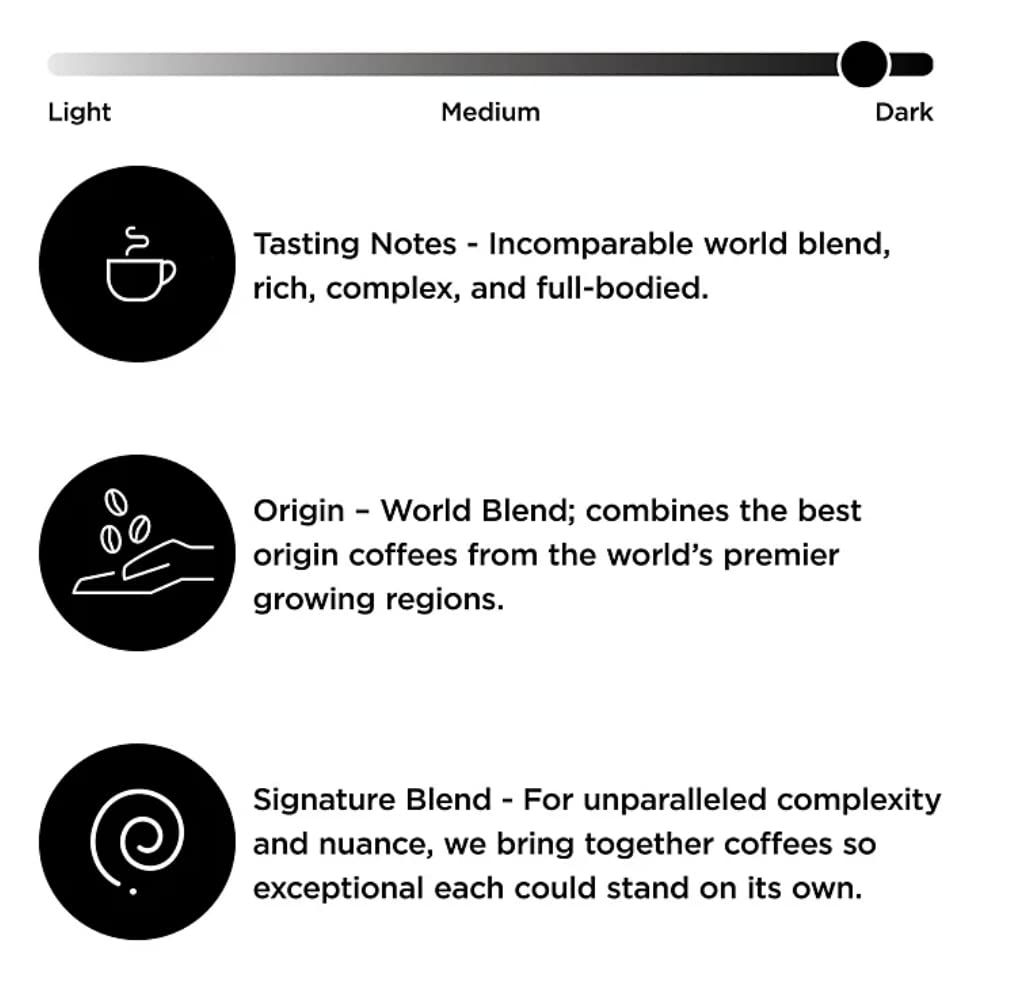 Q: What is the flavor profile of Peet's Coffee Major Dickason's Blend?A: Peet's Coffee Major Dickason's Blend offers a rich, full-bodied flavor with a balanced blend of deep, dark roast notes and hints of chocolate and spice, making it a favorite for those who enjoy a robust coffee experience.