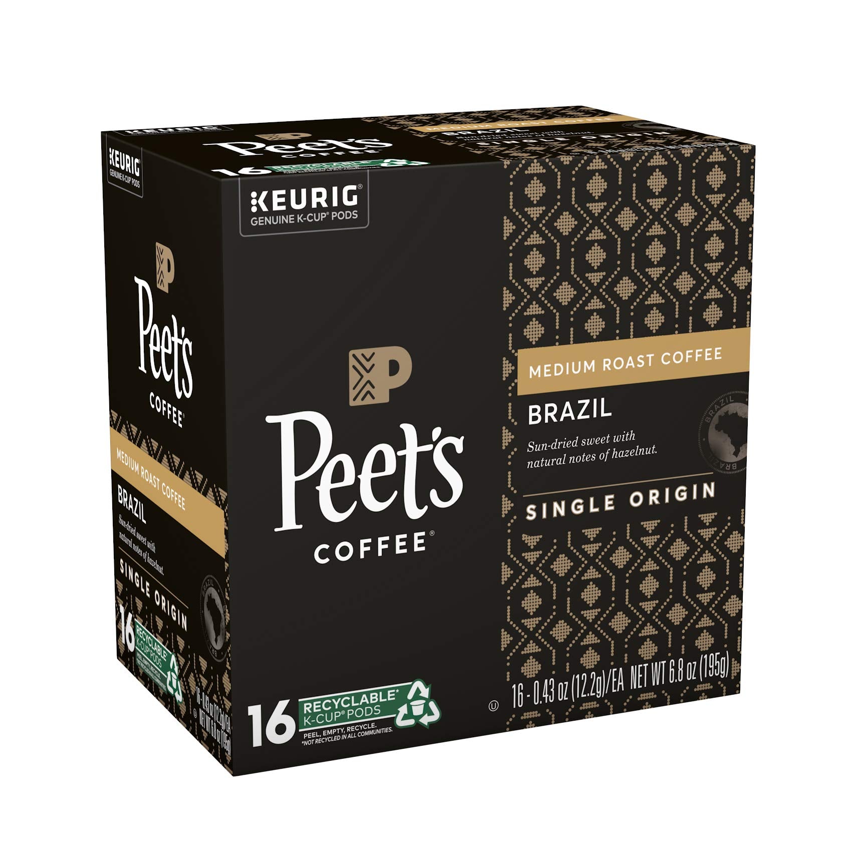 Q: What makes Peet's Coffee Medium Roast K-Cup Pods different from other coffee pods?A: Peet's Coffee Medium Roast K-Cup Pods are made from single-origin Brazil coffee, ensuring a unique flavor profile that is smooth and full-bodied. Unlike many coffee pods, Peet's maintains the same quality and care in roasting, giving you café-quality coffee in a convenient single-serve format.