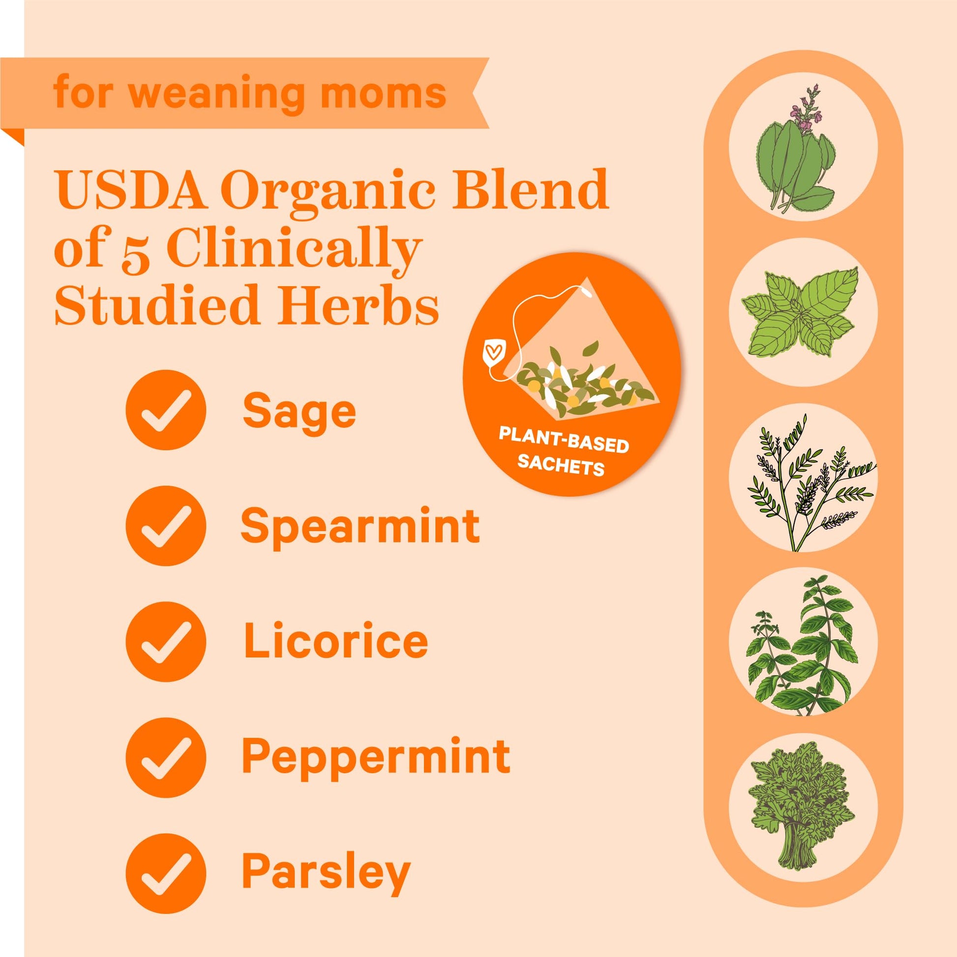 - Q: What makes Pink Stork No Flow Tea different from other breastfeeding teas? A: Pink Stork No Flow Tea stands out due to its unique blend of natural anti-galactagogue herbs like Sage, Parsley, and Mint specifically designed to help with milk reduction. Additionally, it includes calming ingredients such as Spearmint and Peppermint to help ease stress during the weaning process, providing both physical and emotional support.