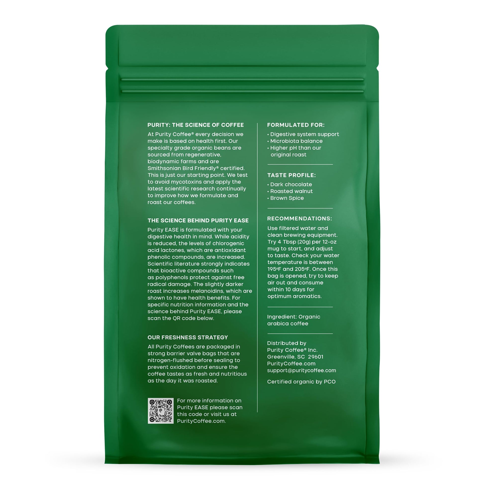 - Q: What distinguishes Purity Coffee EASE from other dark roast coffees? A: Purity Coffee EASE stands out due to its commitment to low acidity, organic certification, and rigorous testing for antioxidants, mold, and mycotoxins. Additionally, it is high-altitude grown and Smithsonian Bird-Friendly certified, which is rare in the coffee industry.