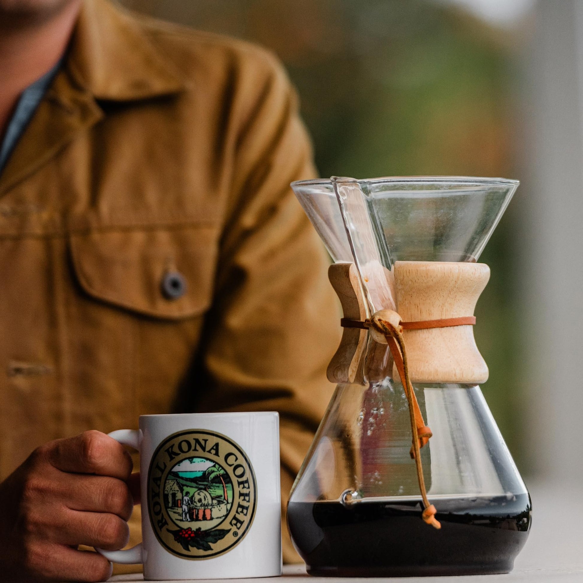 Q: What is the blend percentage of the Royal Kona coffee?A: The Royal Kona coffee blend contains 10% Kona coffee, providing a unique taste profile that combines the deep, roasted flavors with the smoothness characteristic of Kona coffee.