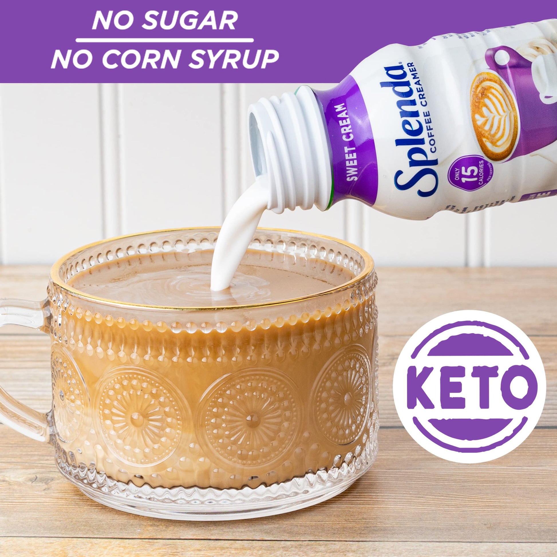 GREAT TASTE: Experience the rich creamy flavor of Sweet Cream with this velvety smooth liquid coffee creamer without the added sugar like other brands | SUGAR FREE: Your health is important to us! We have removed the sugar and corn syrup while keeping the taste you expect with a traditional liquid coffee creamer. This delicious creamer is also Gluten free and Lactose free with 0g Trans Fat. | REDUCED CALORIE: 55% fewer calories than regular flavored creamer - reduced from 35 to 15 calories per serving | SWEETENED WITH SPLENDA: At Splenda, we offer sweet and simple solutions for those who want to make healthy choices without sacrificing taste. | REFRIGERATION: We know refrigerator space is important. You can store unopened bottles in your pantry or cabinet. Refrigerate after opening.