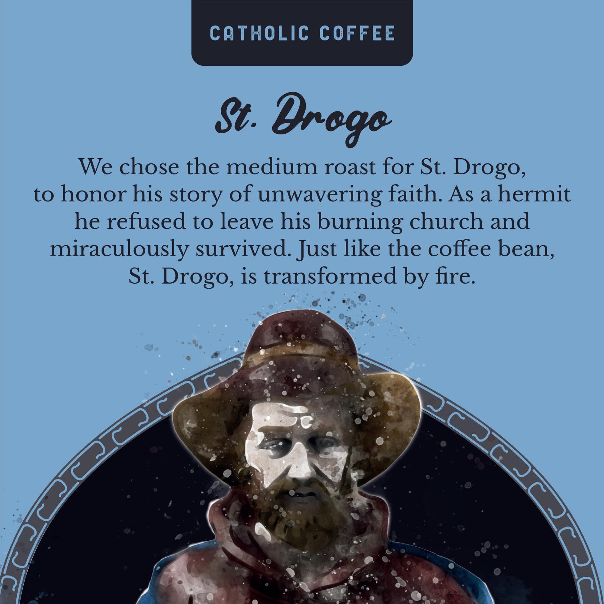 This Ethiopian Medium Roast Coffee Honors The Beloved St. Drogo, Patron Saint Of Coffee. His Father Died Before He Was Born And His Mother Died In Childbirth. A Flemish Noble, He Was Raised By Relatives, And Upon Discovering What Happened To His Parents, Felt Called To Live A Life Of Prayer And Penance Devoted To God. At The Age Of 20, He Sold All He Owned And Lived As A Shepherd, Hermit, Pilgrim And Anchorite Near Sebourg, France. He Became Physically Disfigured, But Was Recognized For His Holiness And Charity. He Is The Patron Saint Of Coffee Because Of His Simple And Humble Diet. This Ethiopian Blend Features The Strength Of A Dark Roast And The Smoothness Of A Medium Roast. Semi-Sweet Chocolate And Heavy Dark Berry Notes Offer An Enriching Influence In The Delicious Flavor Profile, Featuring The Berries St. Drogo May Have Lived Upon In His Simple Diet As A Hermit. Honoring The Patron Saint Of Coffee, It Makes A Unique And Delicious Gift Of Devotion.