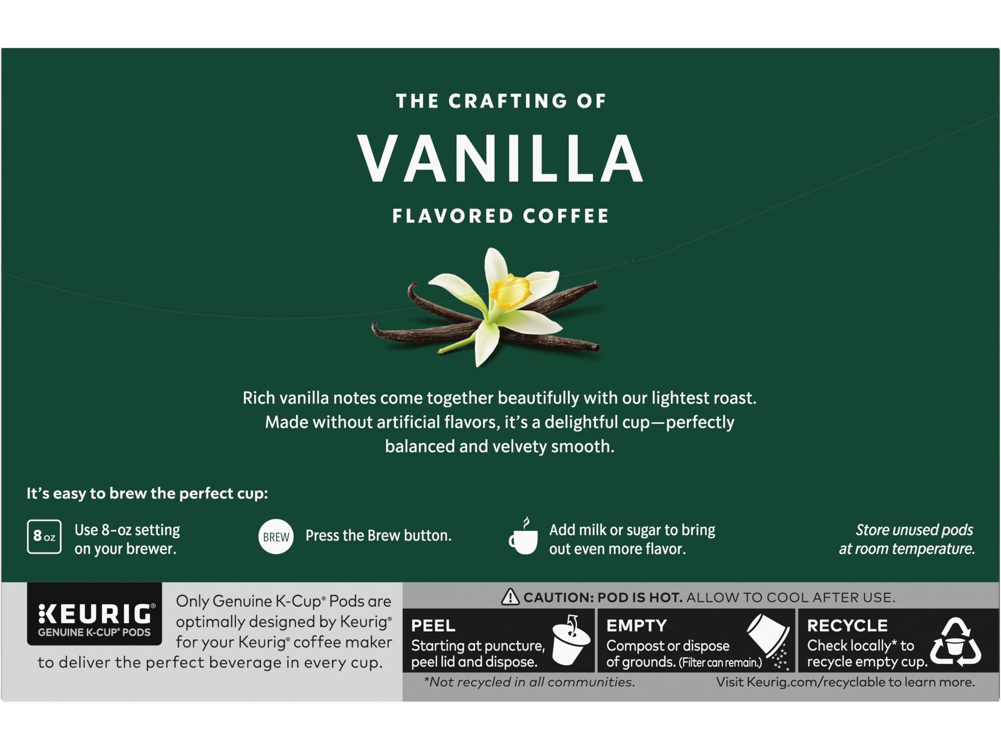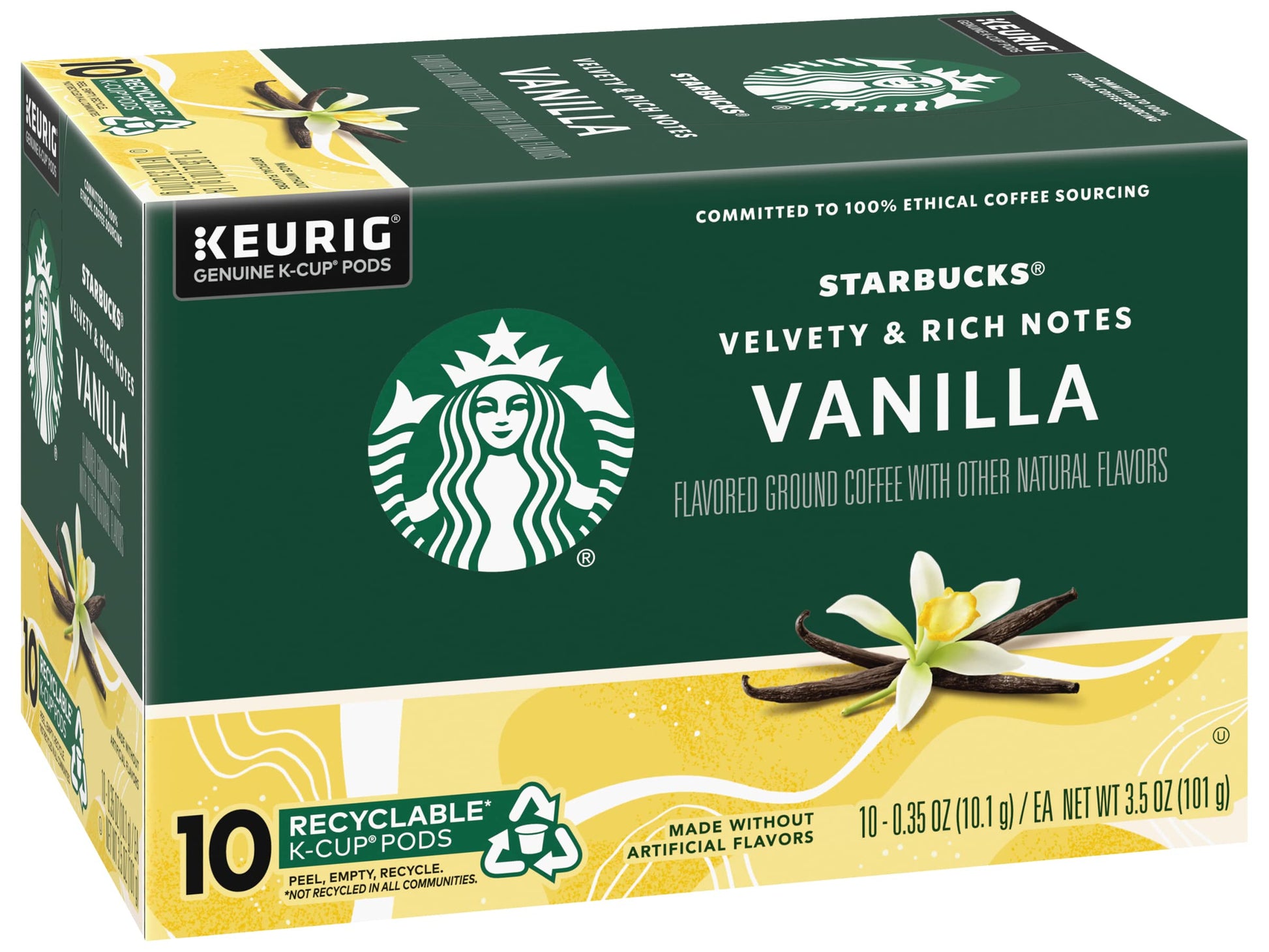 Q: What flavors are available in Starbucks K-Cup Pods?A: Starbucks K-Cup Pods are available in various flavors, including Vanilla, which offers a smooth and creamy taste without artificial flavors.